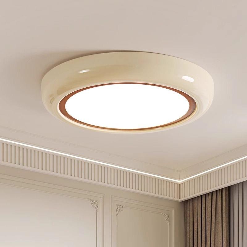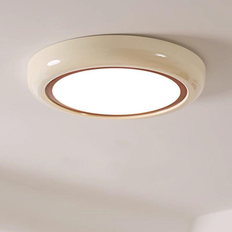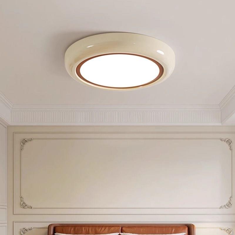 奶油风极简设计师创意圆形房间灯白色复古次卧灯主卧灯卧室吸顶灯