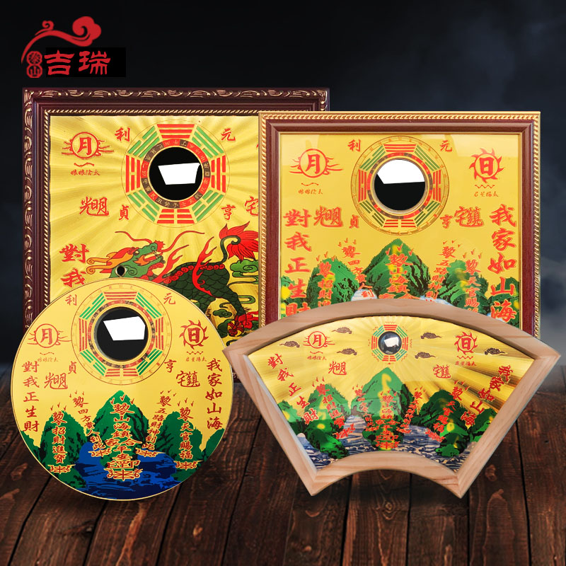 纯铜山海镇图摆件铜牌挂件桃木八卦镜家用大门口凸镜宅室外室内
