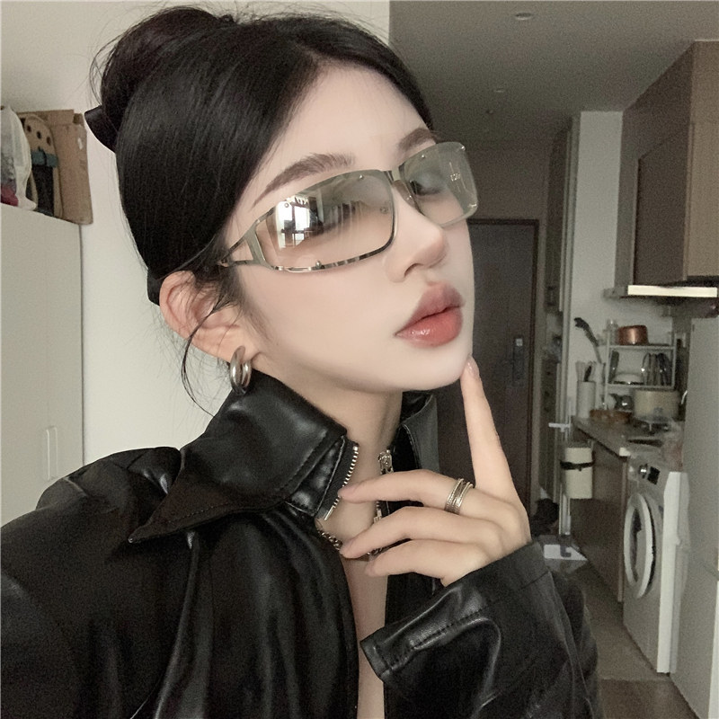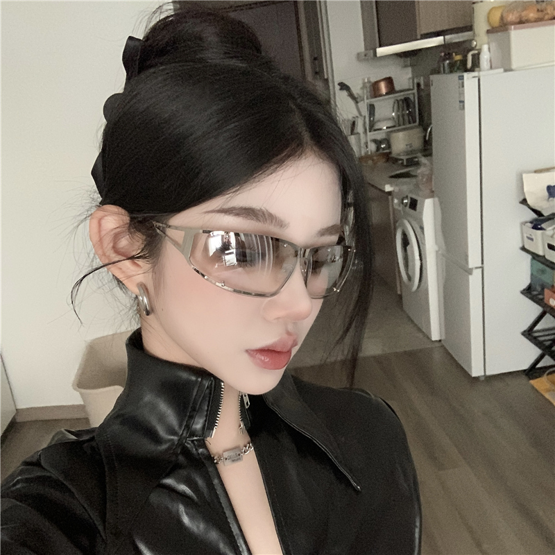 高级质感Y2K太阳眼镜金属镂空水银色2026女欧美个性辣妹拍照墨镜
