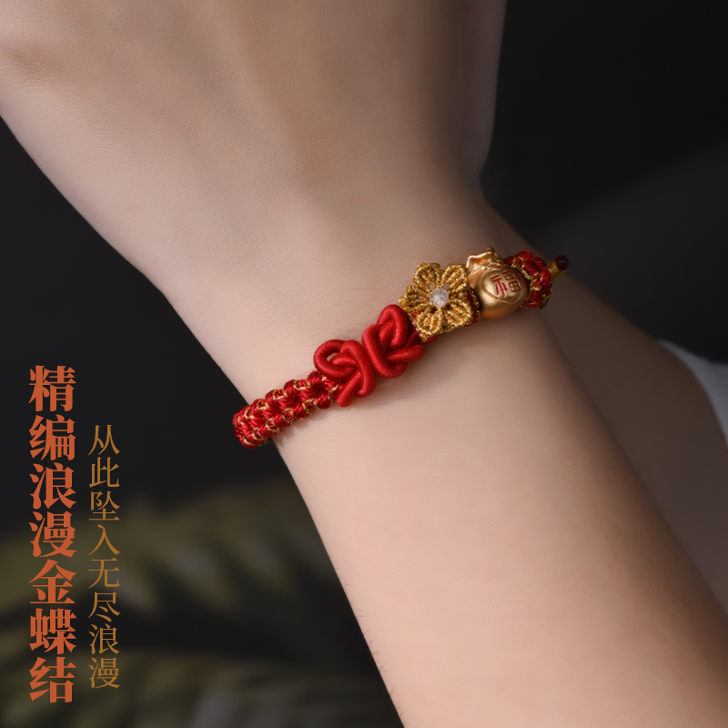 手工编织diy手绳可穿黄金珠蝴蝶桃花结手链女八股手绳可调节新款