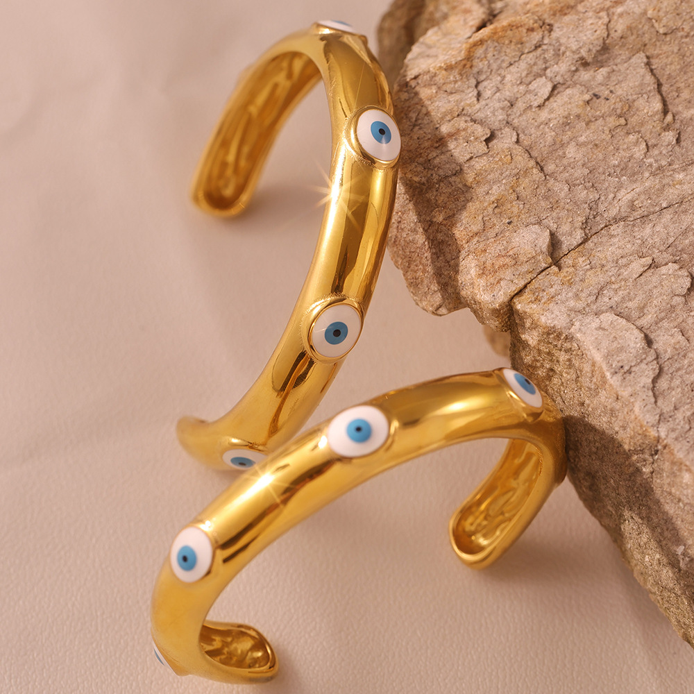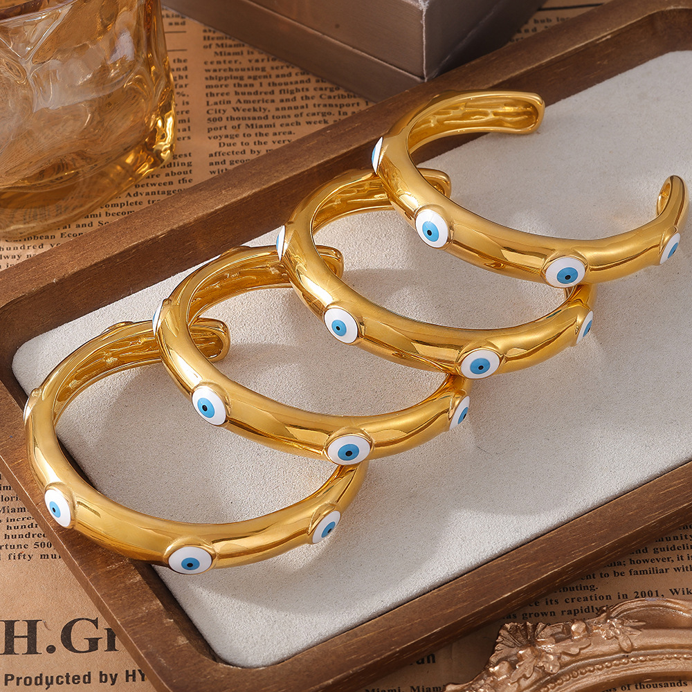 欧美钛钢铸造工艺液油眼睛蓝色开口手镯小众设计开口手环饰品