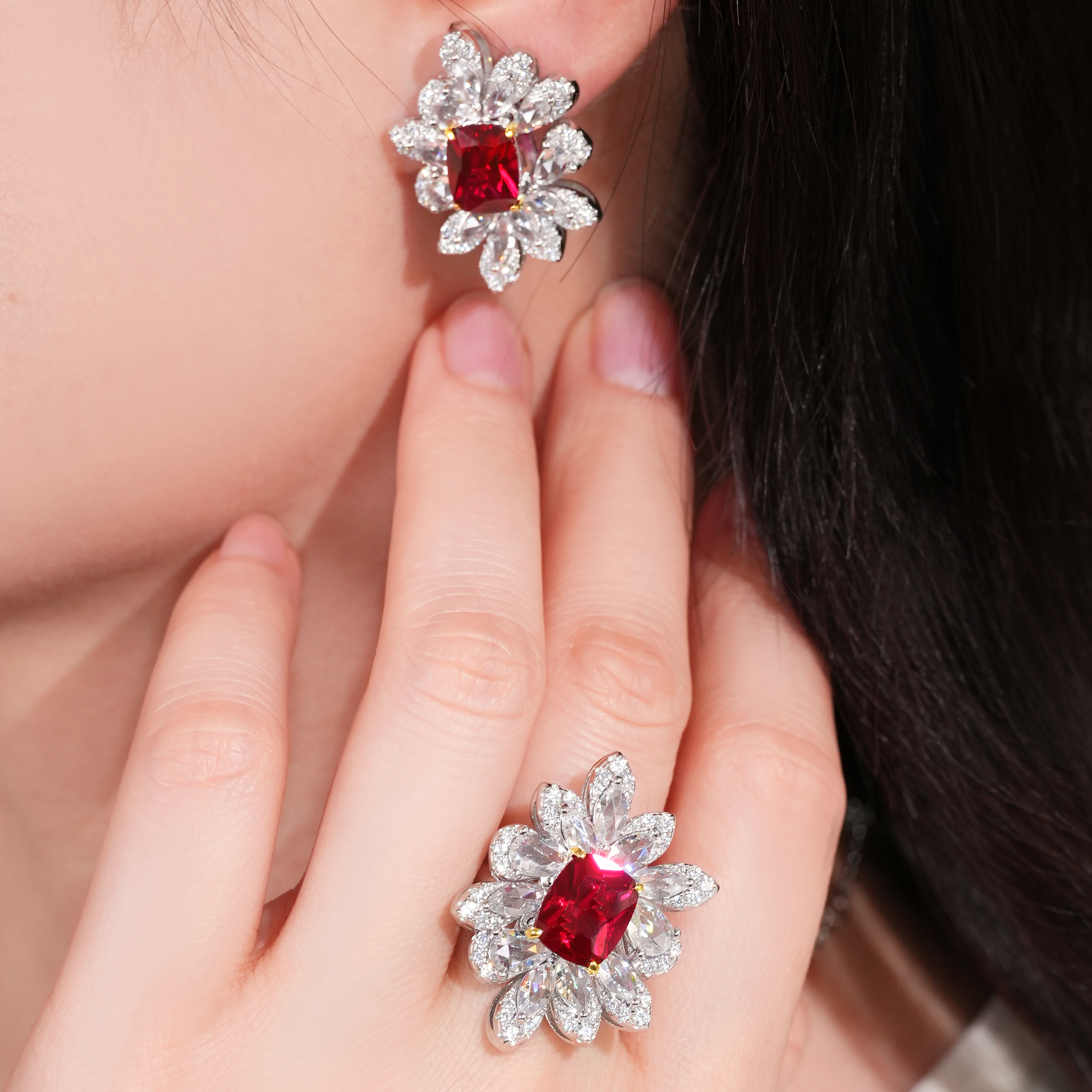 VISING珠宝实验室培育红宝石3.3克拉爆闪玫瑰切戒指指环国检证书