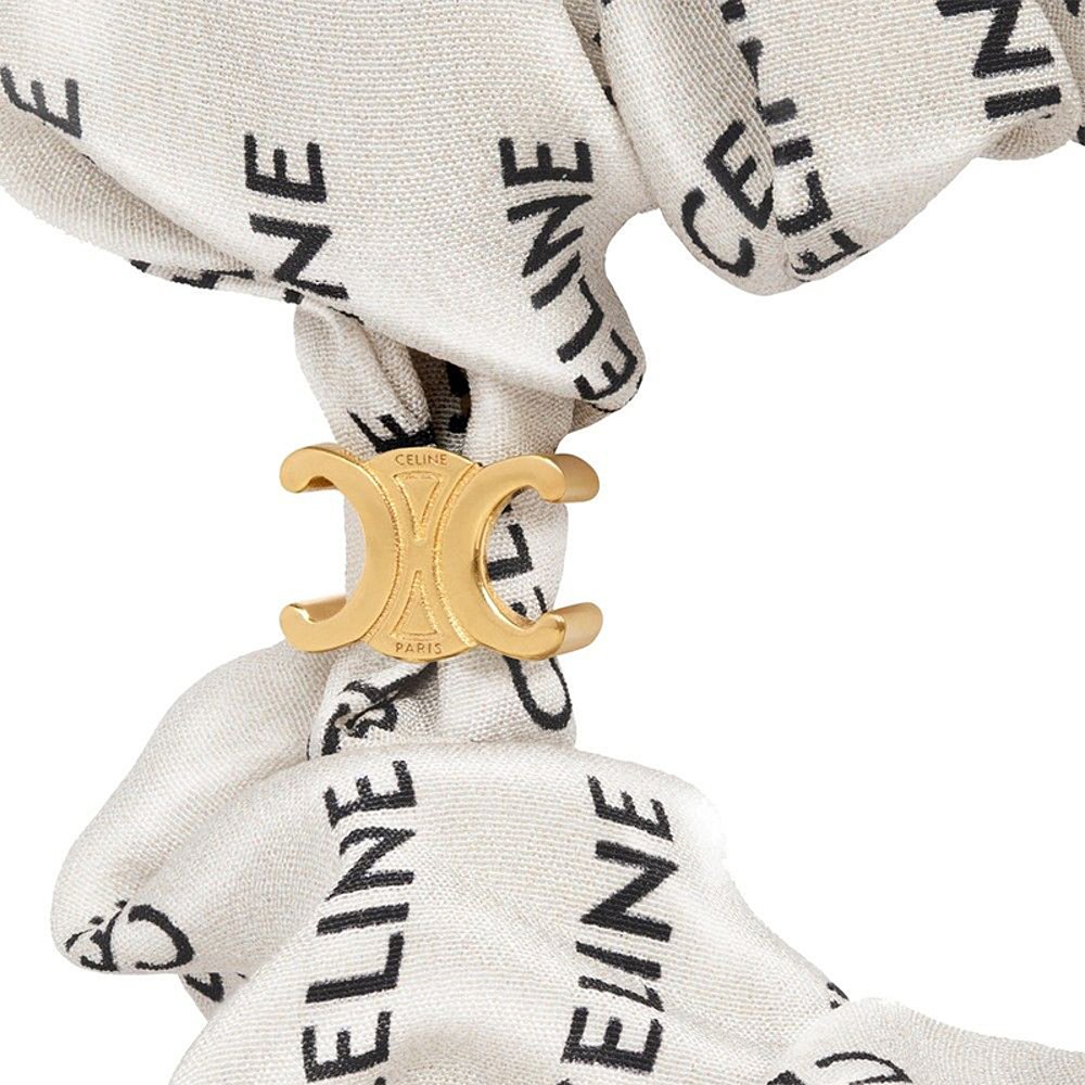 自营|Celine思琳丝绸手镯黄铜凯旋门拼接字母logo印花白色