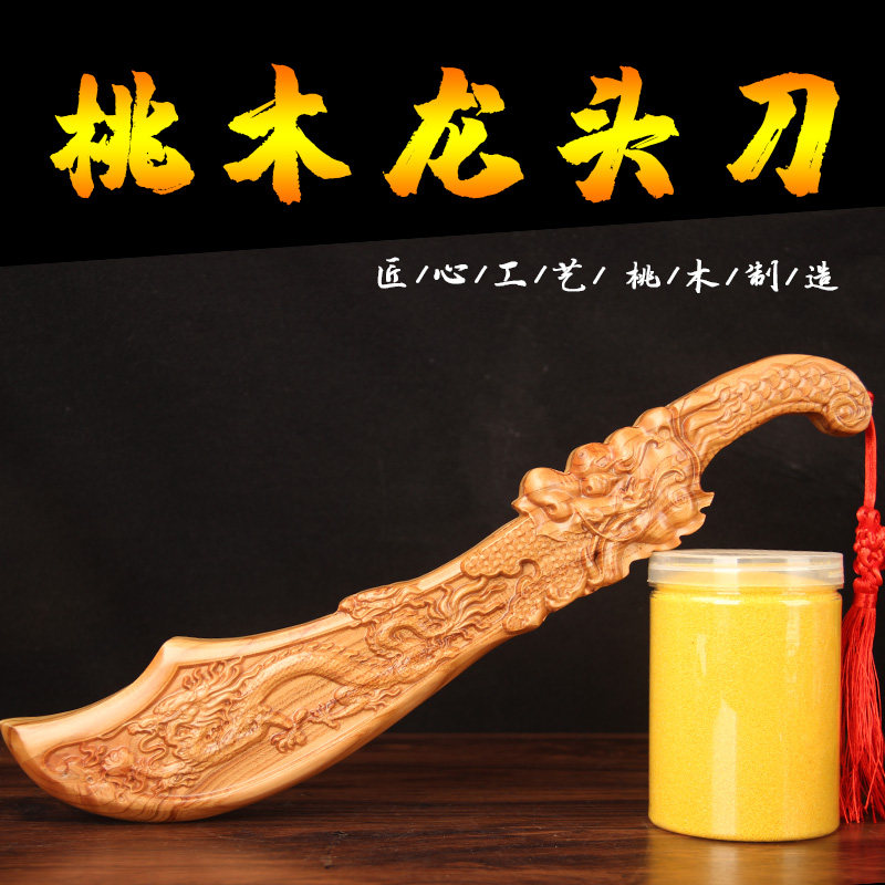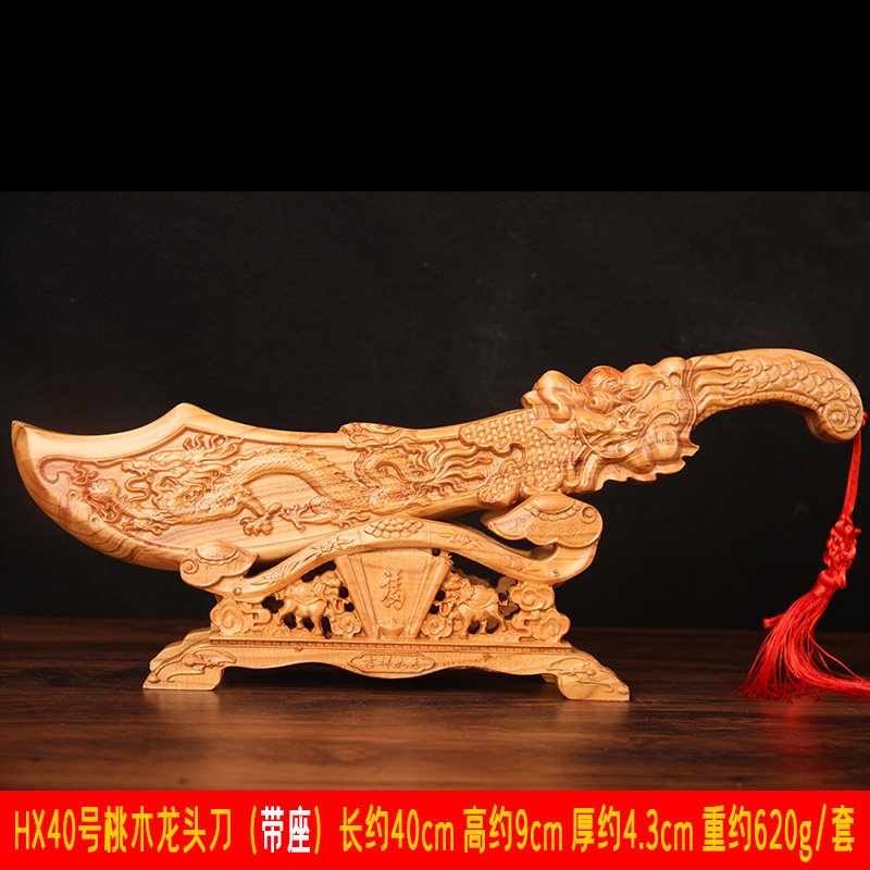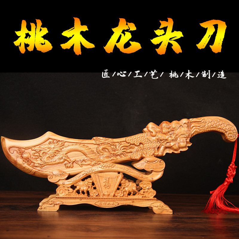 桃木龙头刀摆件桃木刀雕刻摆件实心手工中式家居装饰品工艺品