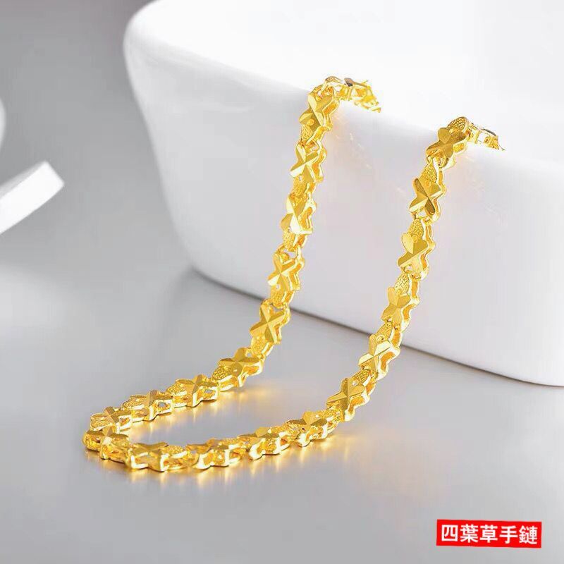 韩国Spar18K金四叶草手链女古法手工纯银镀黄金色高级感礼物