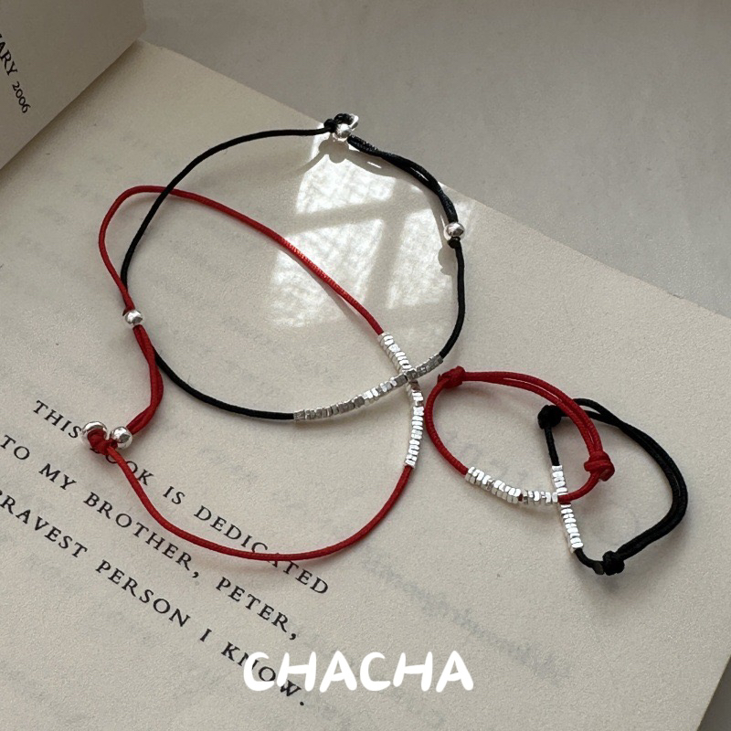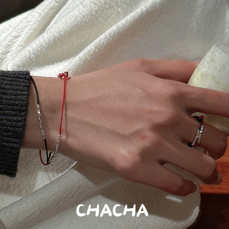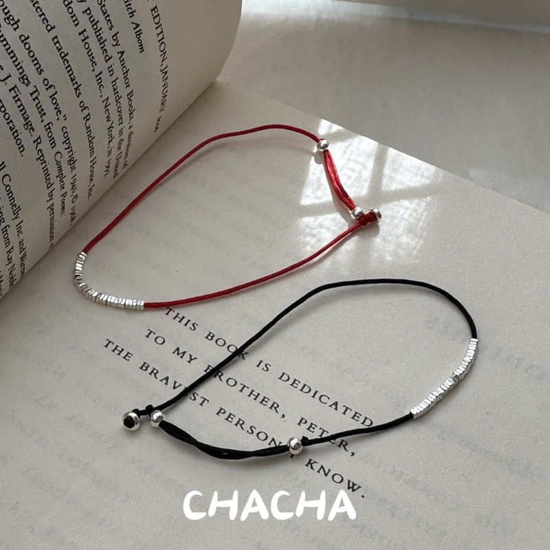 茶茶 S925银小众设计感基础款碎银子红绳手链基础简约新年款首饰