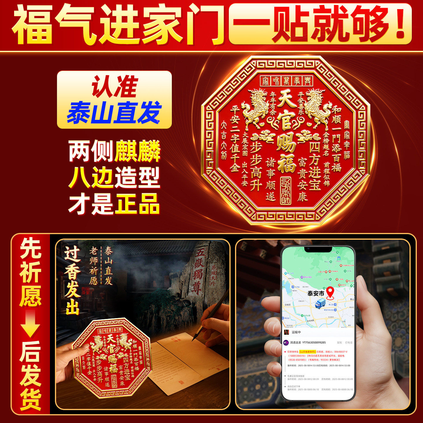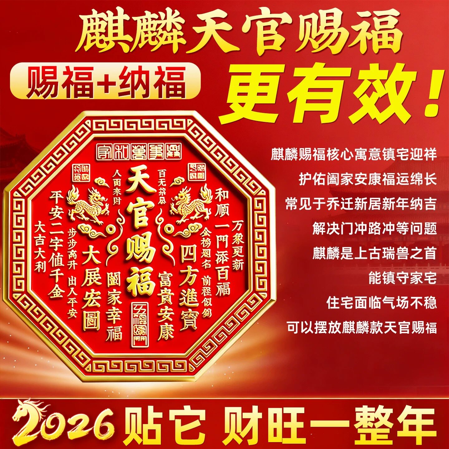 天官赐福麒麟款门贴八边形解决入户门对门贴金属门牌玻璃浮雕福贴
