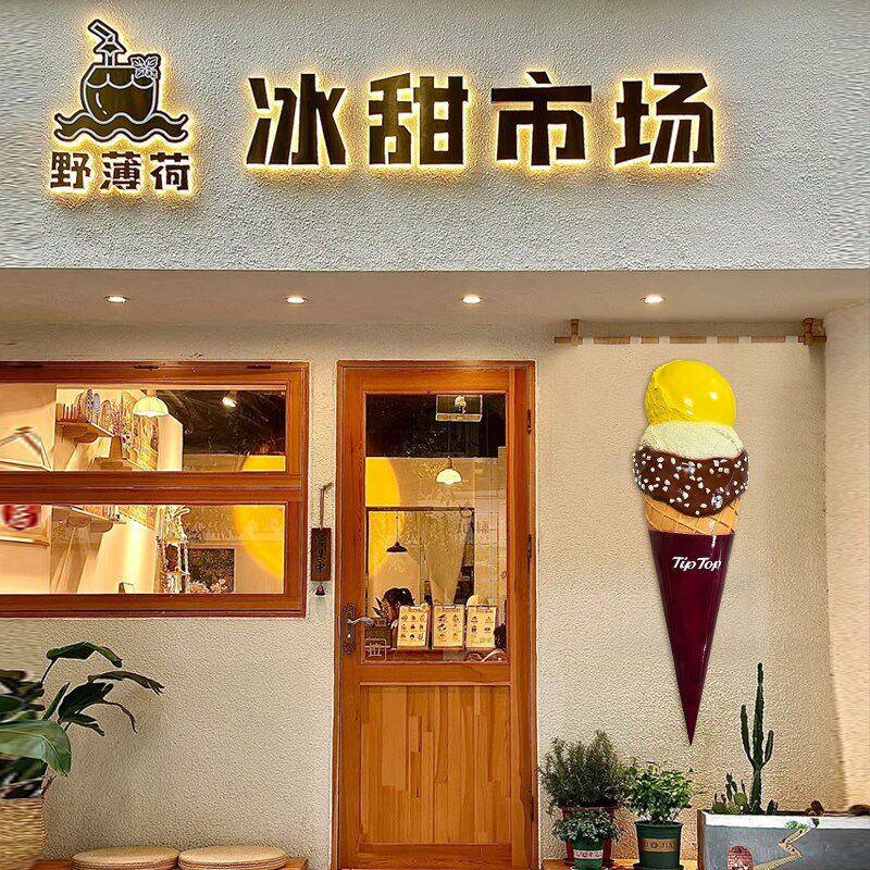 门头壁挂融化冰淇淋雕塑模型小红书超火发光雪糕冰激凌甜品店摆件