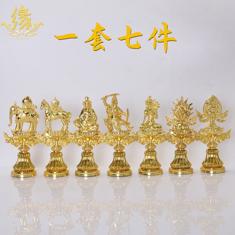 七政宝合金鎏金整套桌面摆件佛前摆件供佛套装七珍吉祥组合佛具