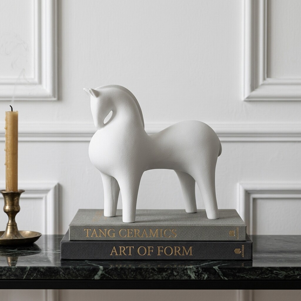 白色独角兽摆件创意桌面装饰小马造型家居样板间工艺品高级感小众