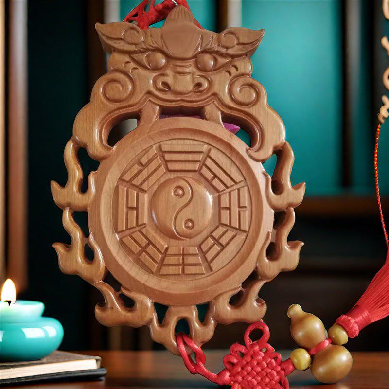 宽13-15cm】虎头桃木兽头八卦镜卫生间挂件解决厕所对大门卧室