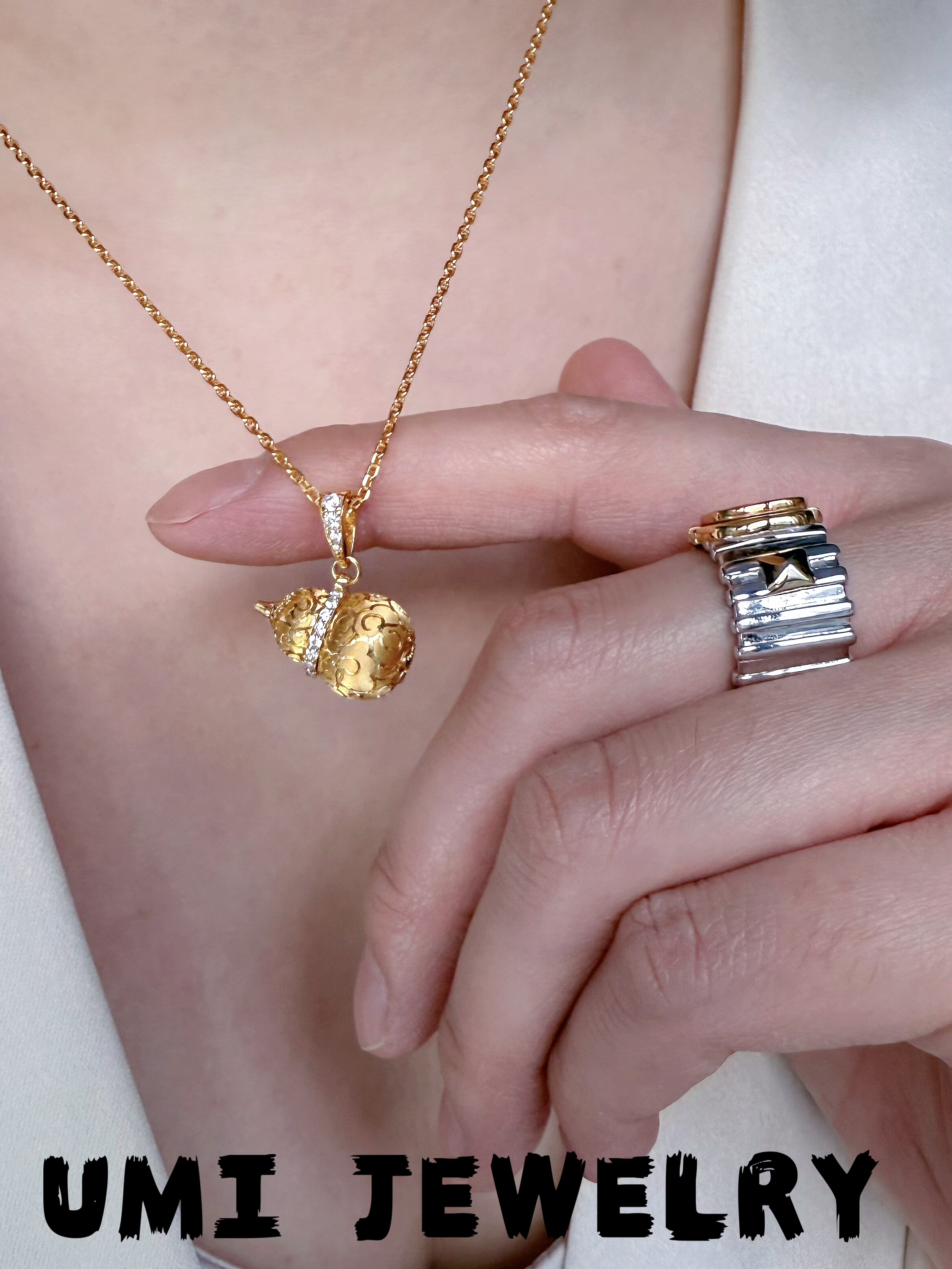UMI【祥云】S925银镀k金·祥云图腾磨砂国风葫芦轻奢高级纯银吊坠