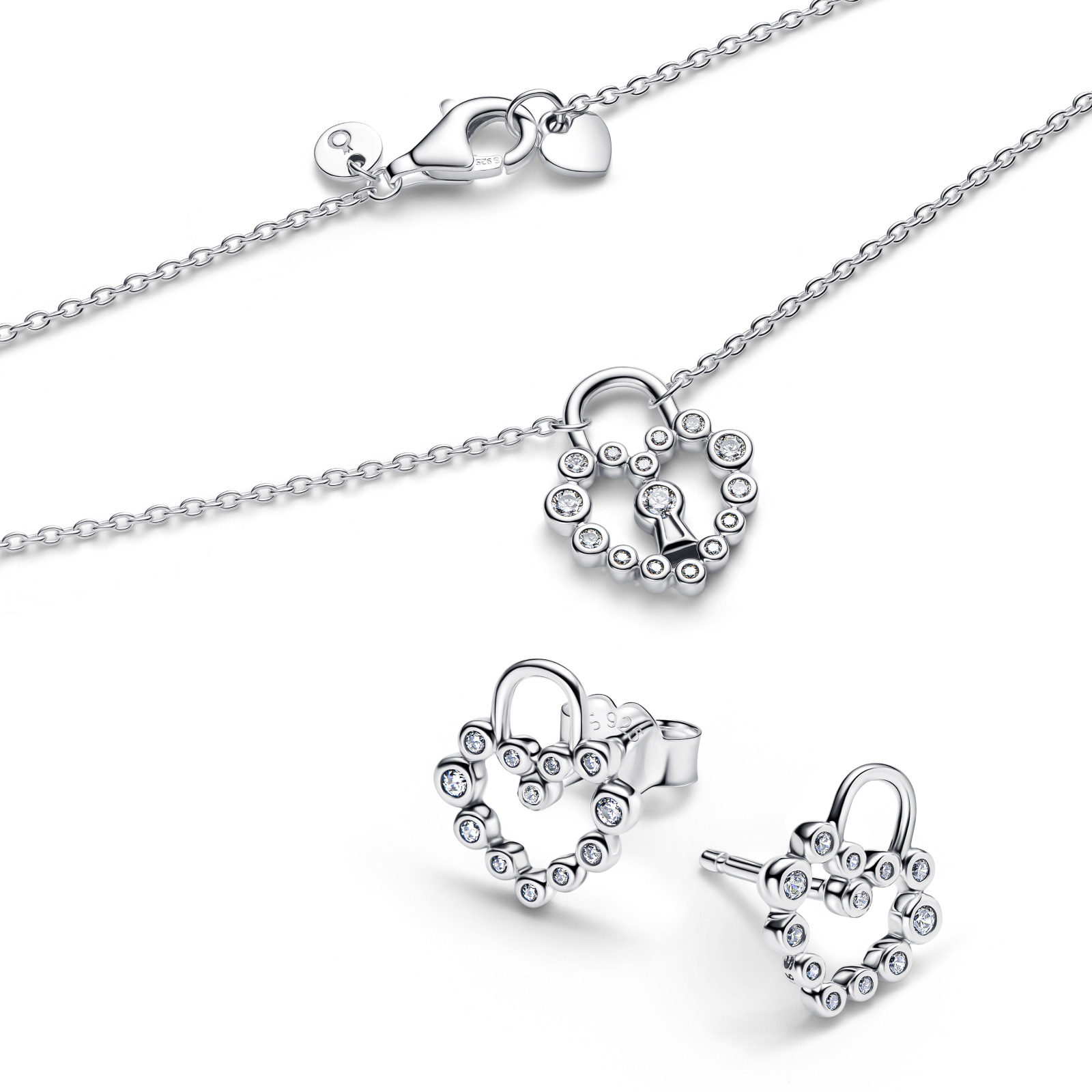 Pandora潘多拉心芯相印项链耳钉套组红色心形造型