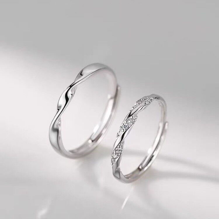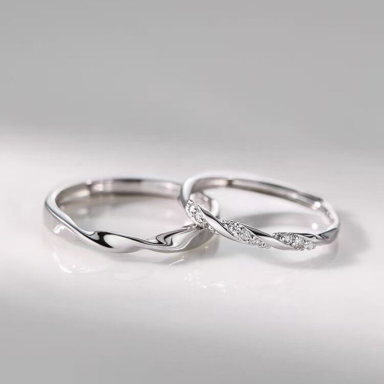 925纯银三生三世情侣对戒轻奢高级感男女指环素圈开口戒