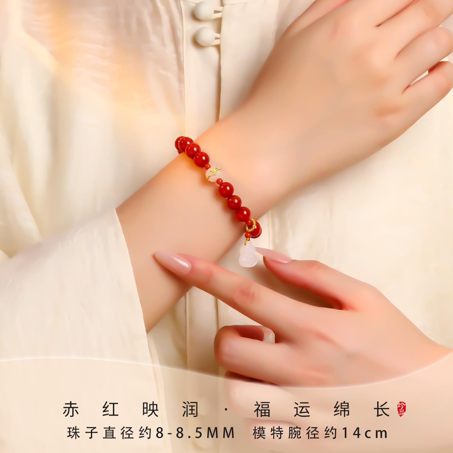 南红玛瑙手串葫芦吊坠男女士红色玉髓原石单珠串珠手链2026新款