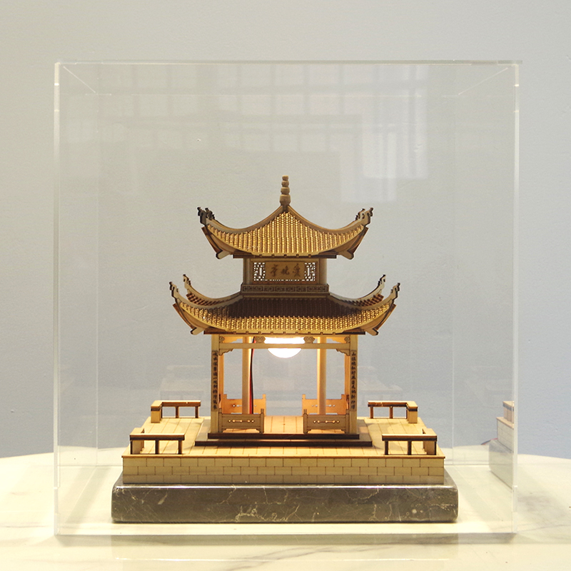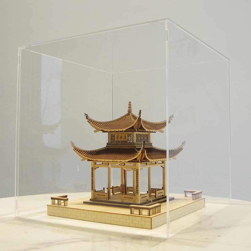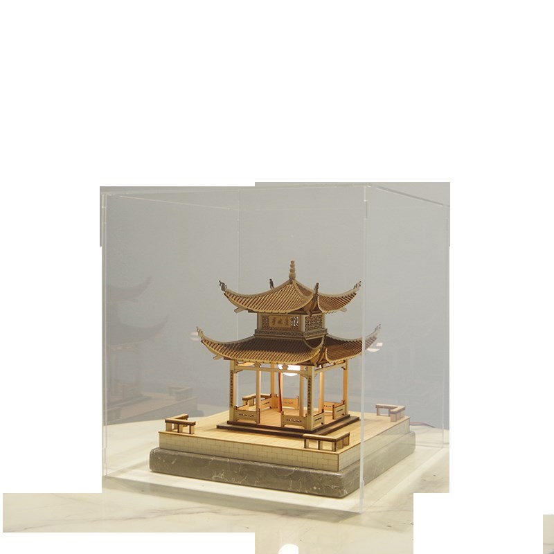 新中式中国风带灯木质拼装模型亚克力罩成品摆件样板房书房玄关