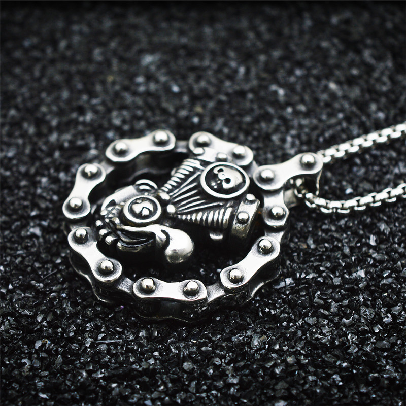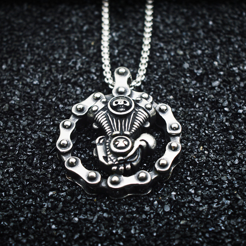 复古哈雷机车大发动机项链男女士钛钢吊坠项链个性时尚情侣配饰品