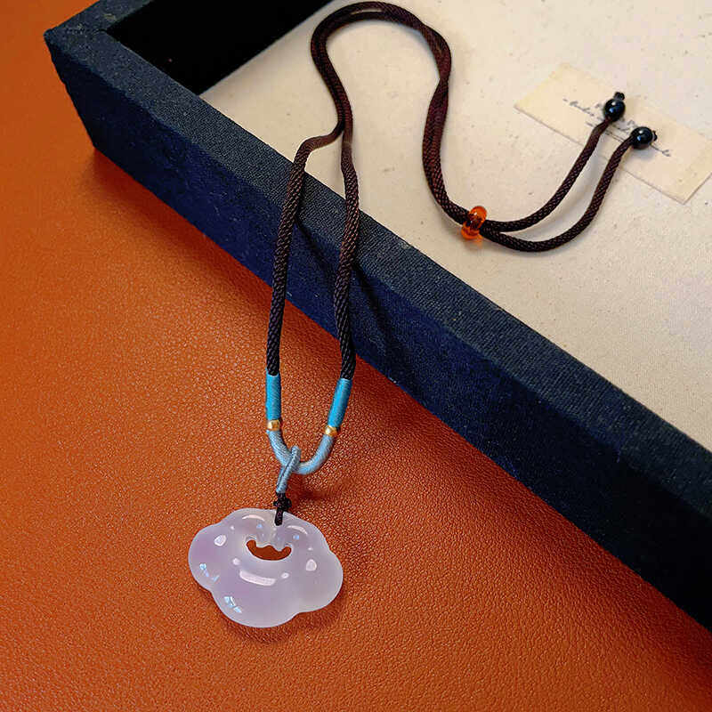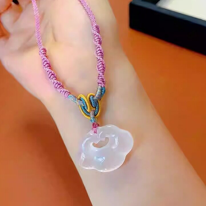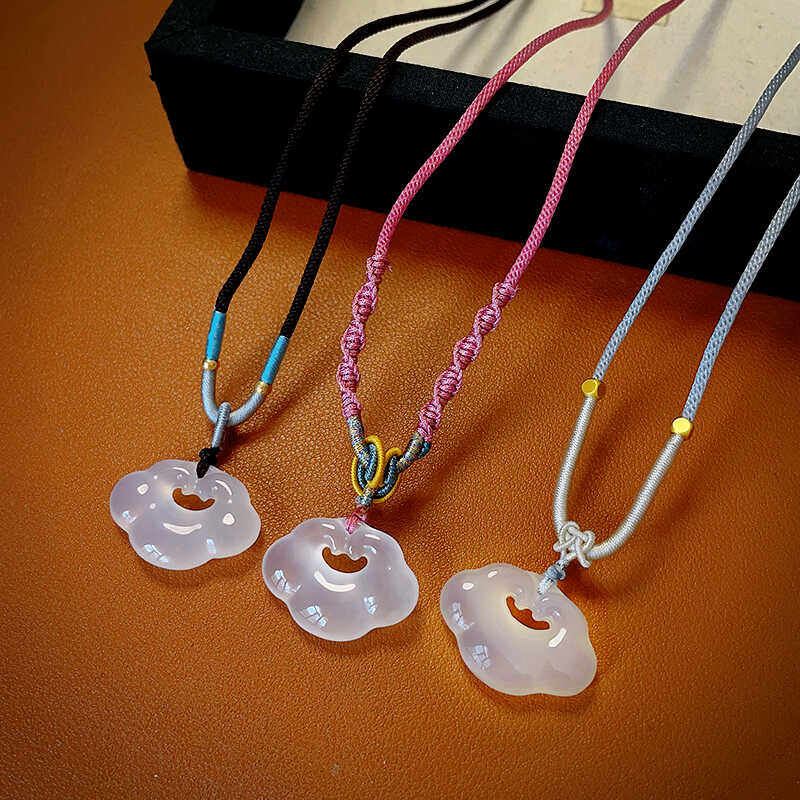 天然白玉髓祥云如意锁狐狸锁骨链玛瑙平安扣玉石宝宝儿童吊坠挂件