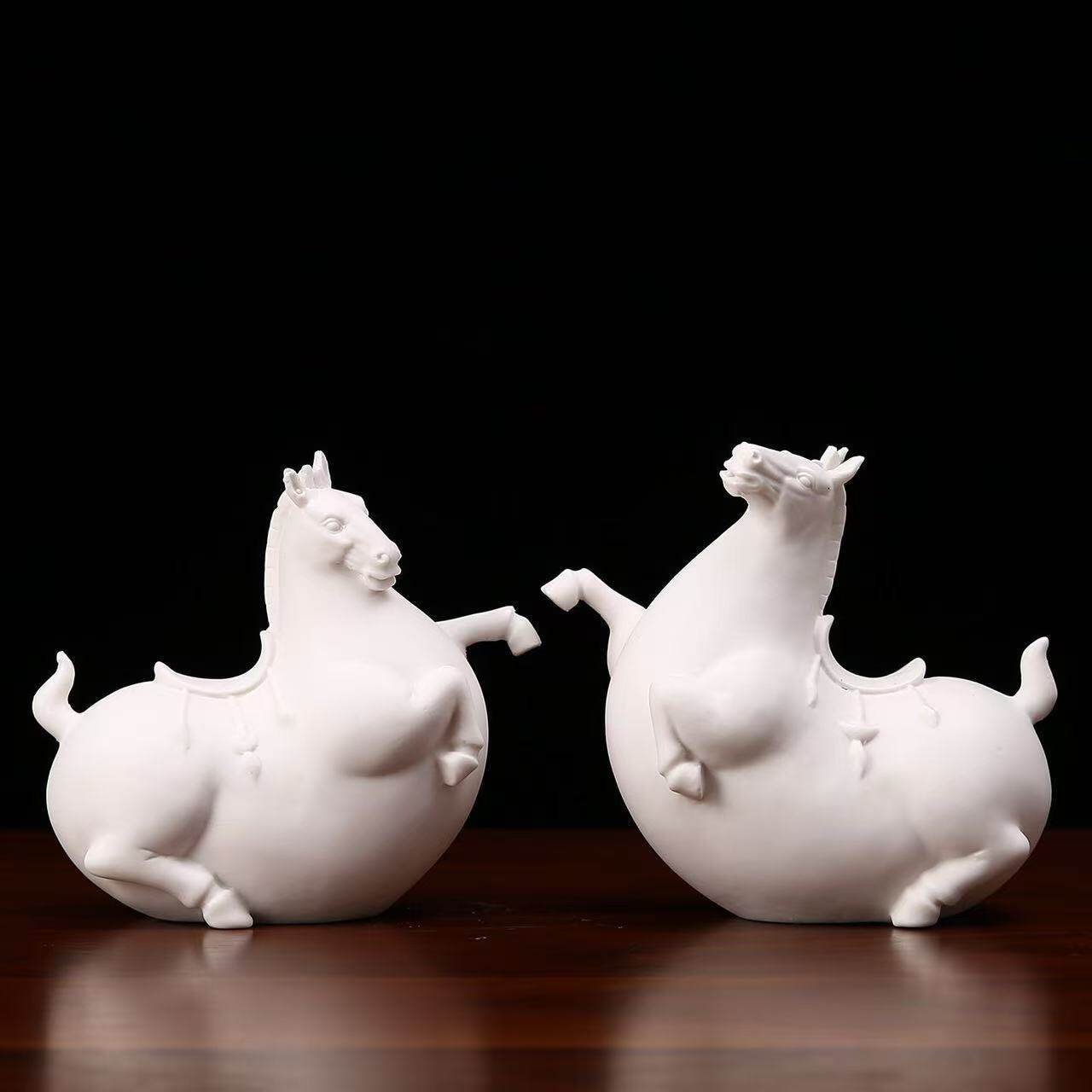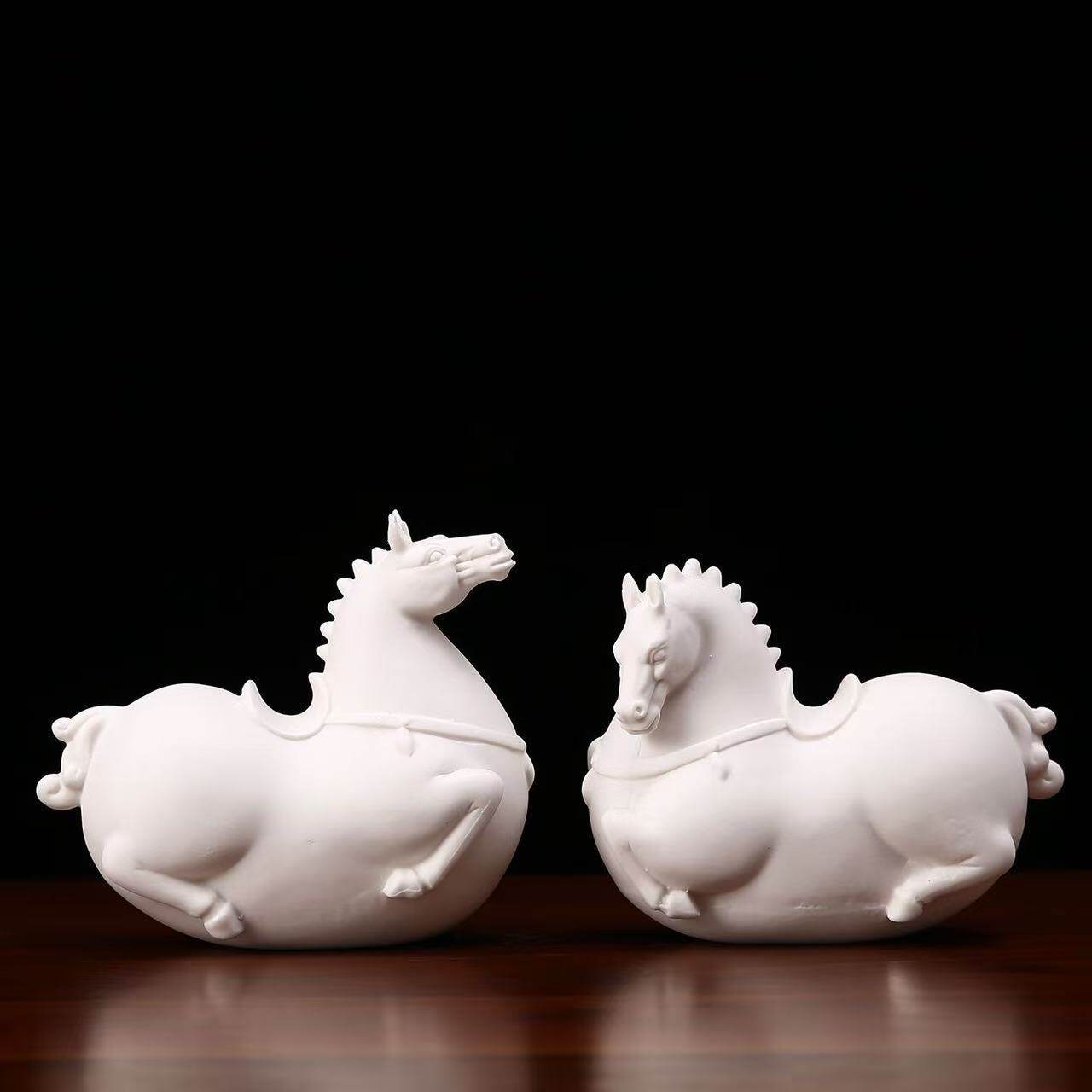 白色陶瓷马摆件家居装饰品客厅办公室工艺品高级感一对伴手礼