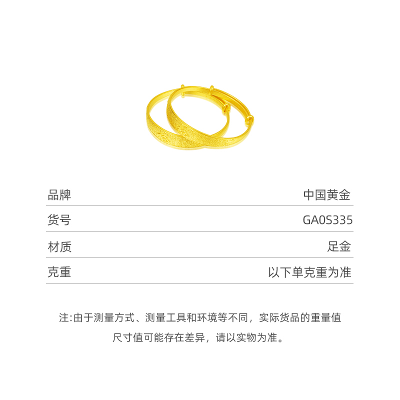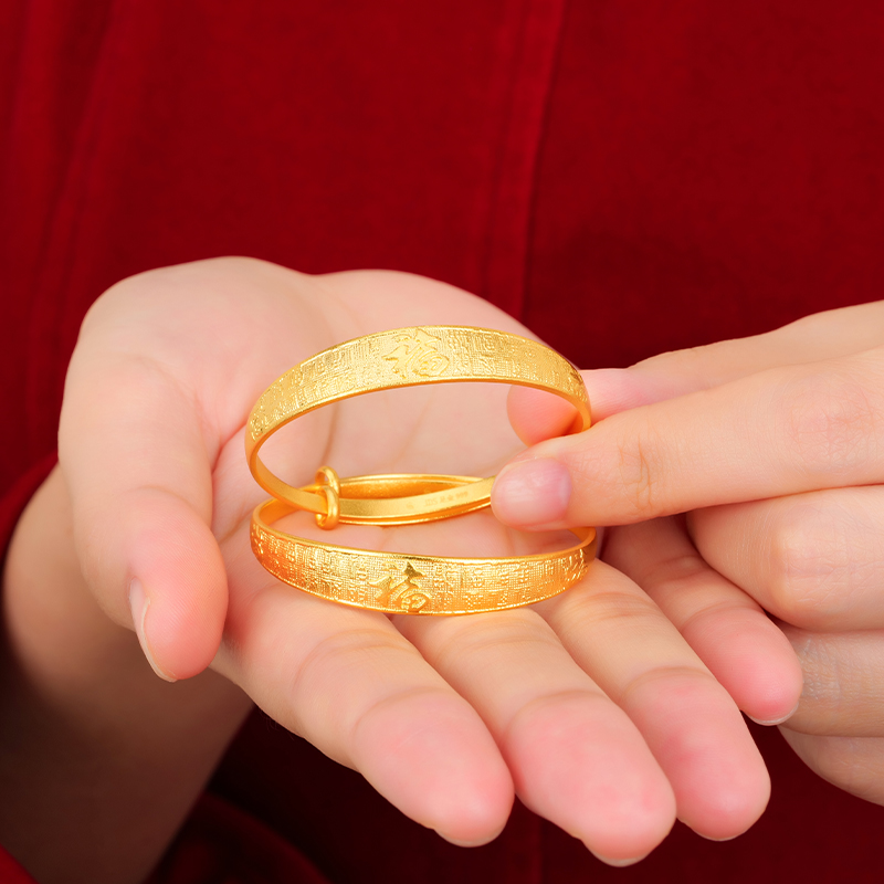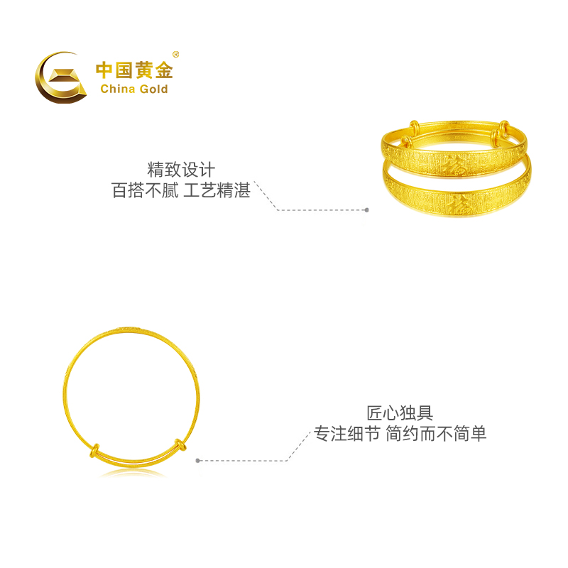 【中国黄金官方店】足金古法百福福字宝宝手镯(一对)时尚饰品