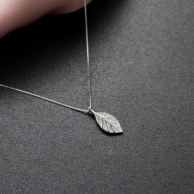 s925银森系微钻树叶项链女高级感配饰叶子吊坠颈链锁骨链新