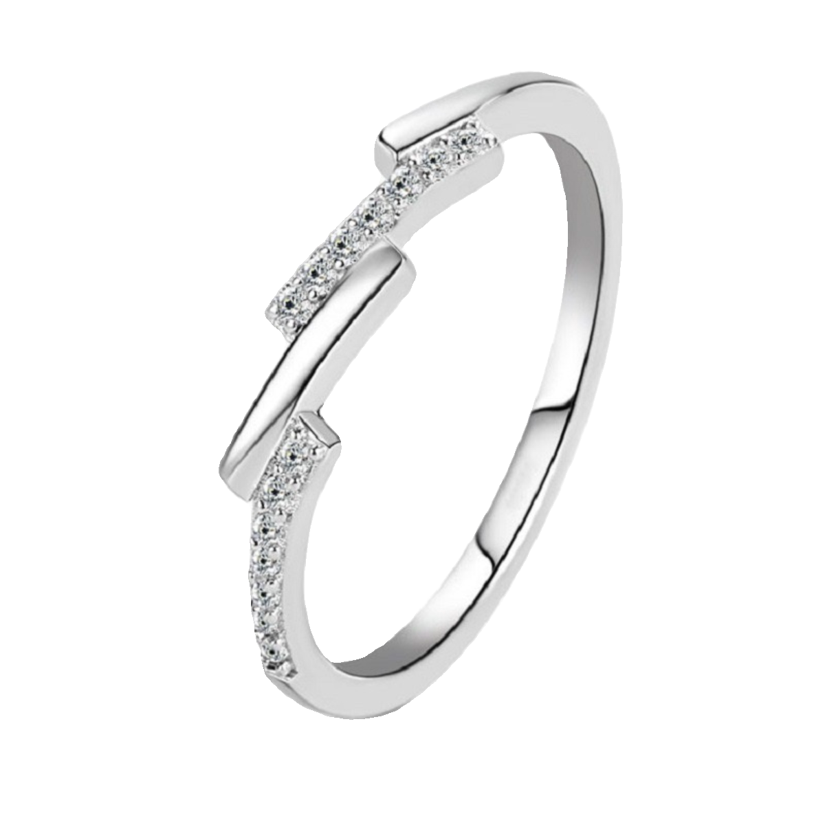 18K白金D色莫桑石微镶独特设计感戒指纯银小众清冷风ins时尚通勤