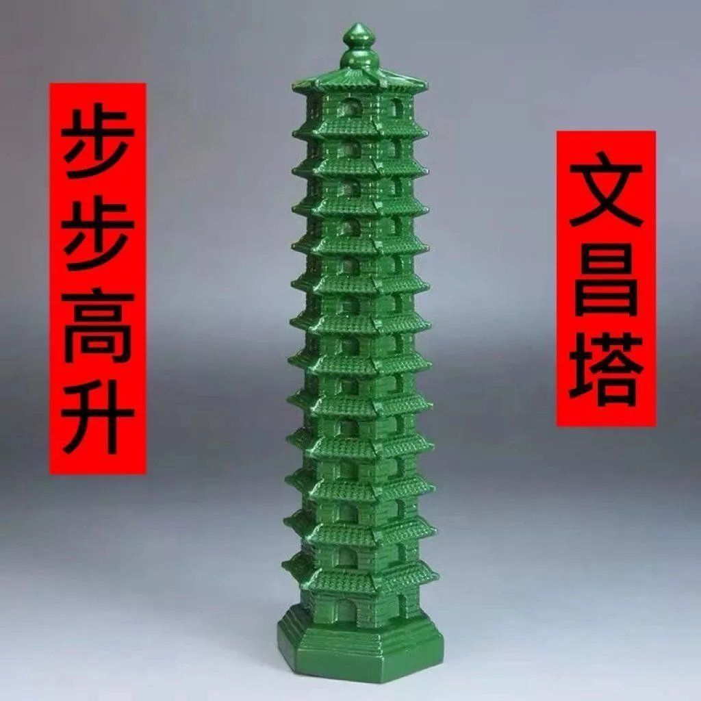 绿色木质13层文昌塔摆件礼品实木质九层文昌塔家居办公室装饰摆设