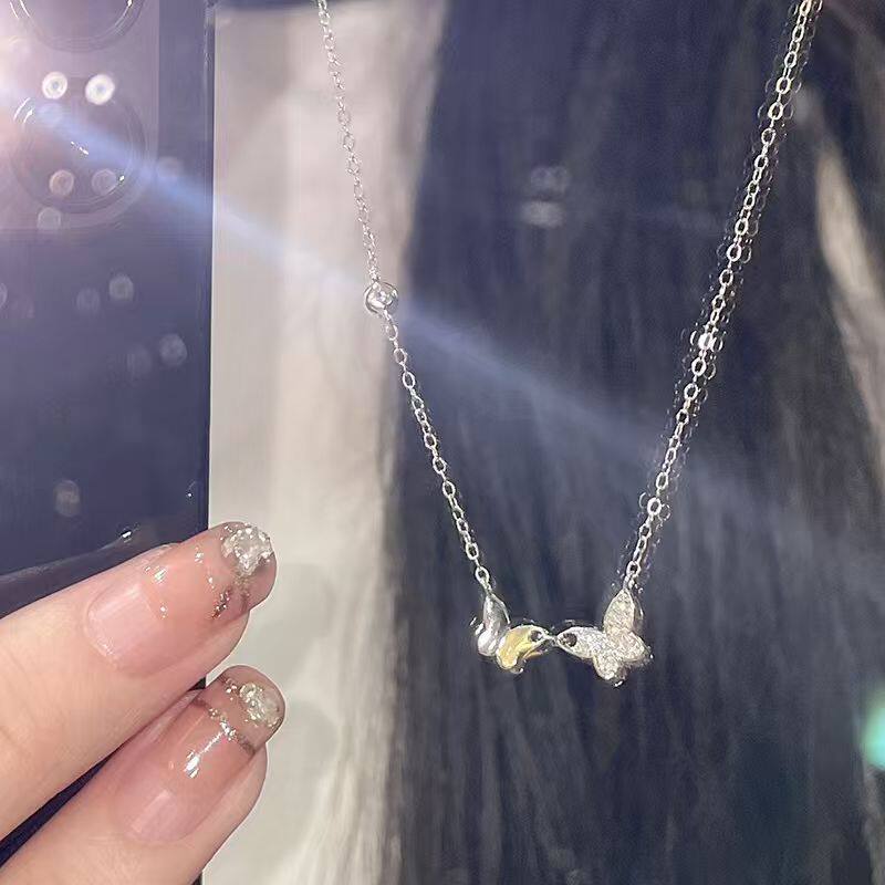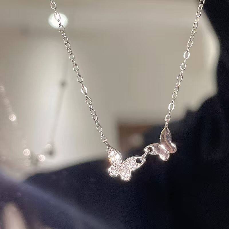 JUSONG KLEIN蝴蝶项链女轻奢小众设计感满钻双蝶锁骨链