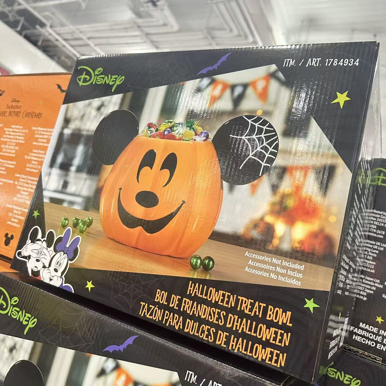 开市客Costco购迪士尼米奇万圣节南瓜灯糖果碗摆件装饰带led灯