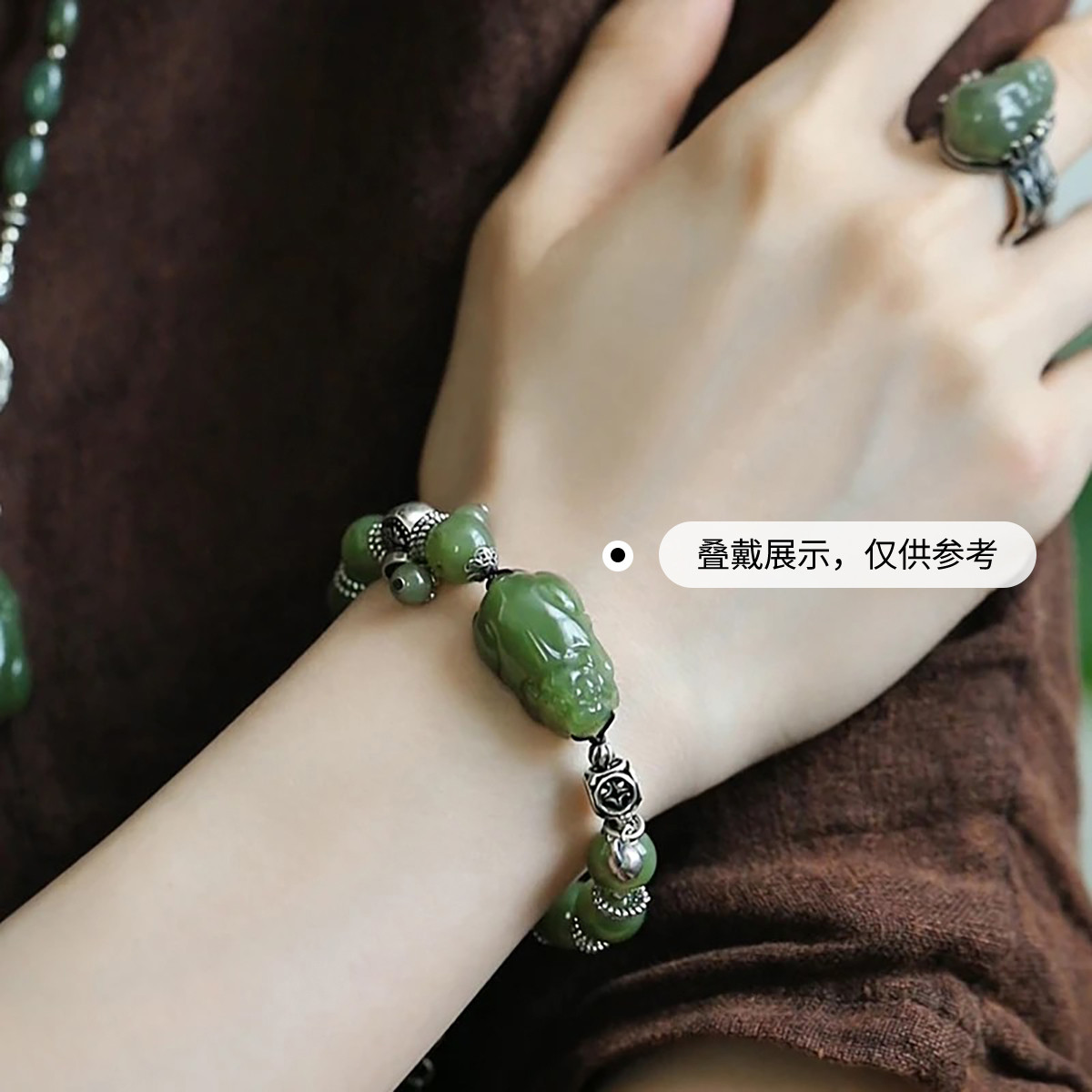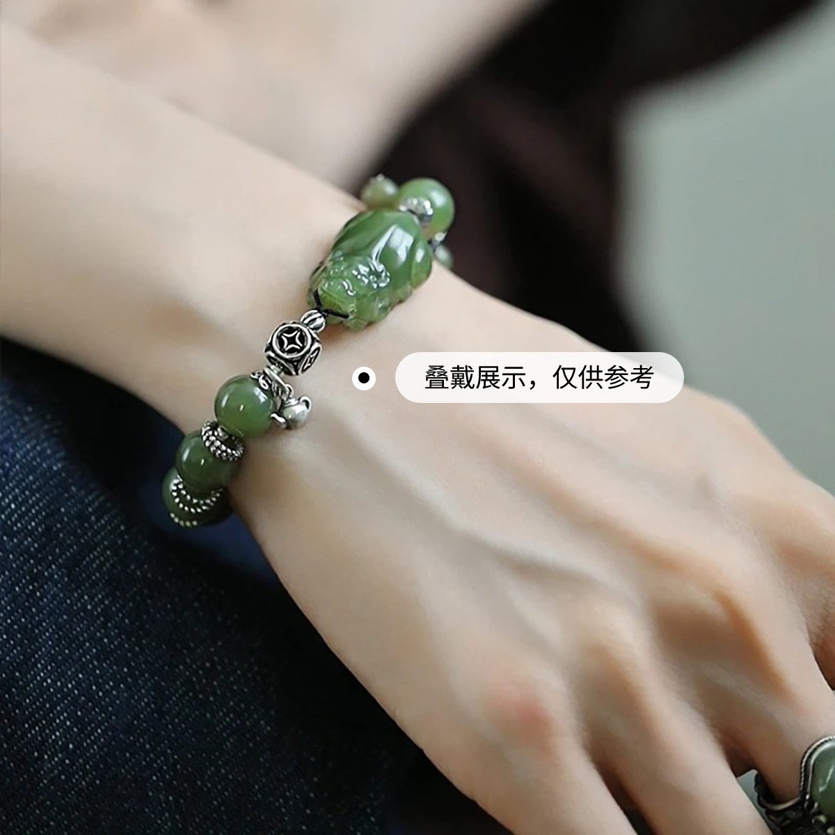 当前位置:首页>商品详情>925银手串复古风和田玉貔貅手链女饰品女轻奢小众设计高级感手环