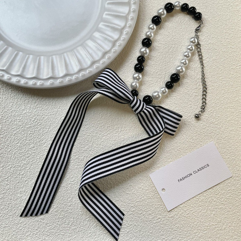 甜美蝴蝶结丝巾丝带颈饰珍珠飘带配饰千金感锁骨链项链高级感领巾