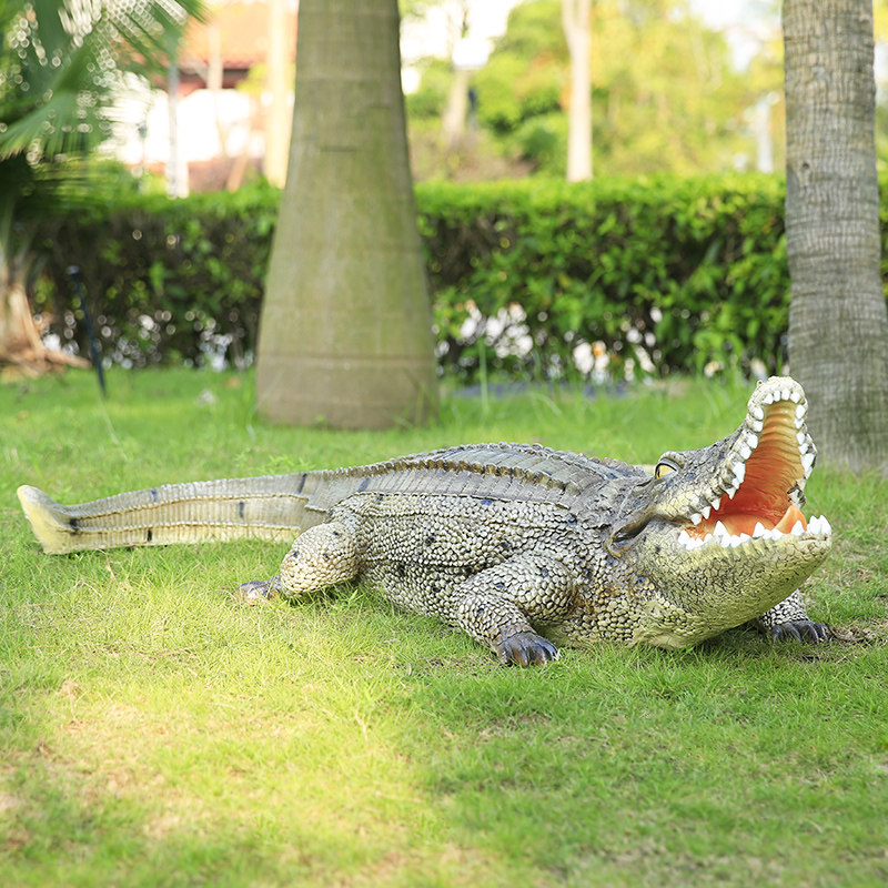 仿真大鳄鱼玻璃钢雕塑摆件庭院子别墅花园游乐园水池景观装饰小品
