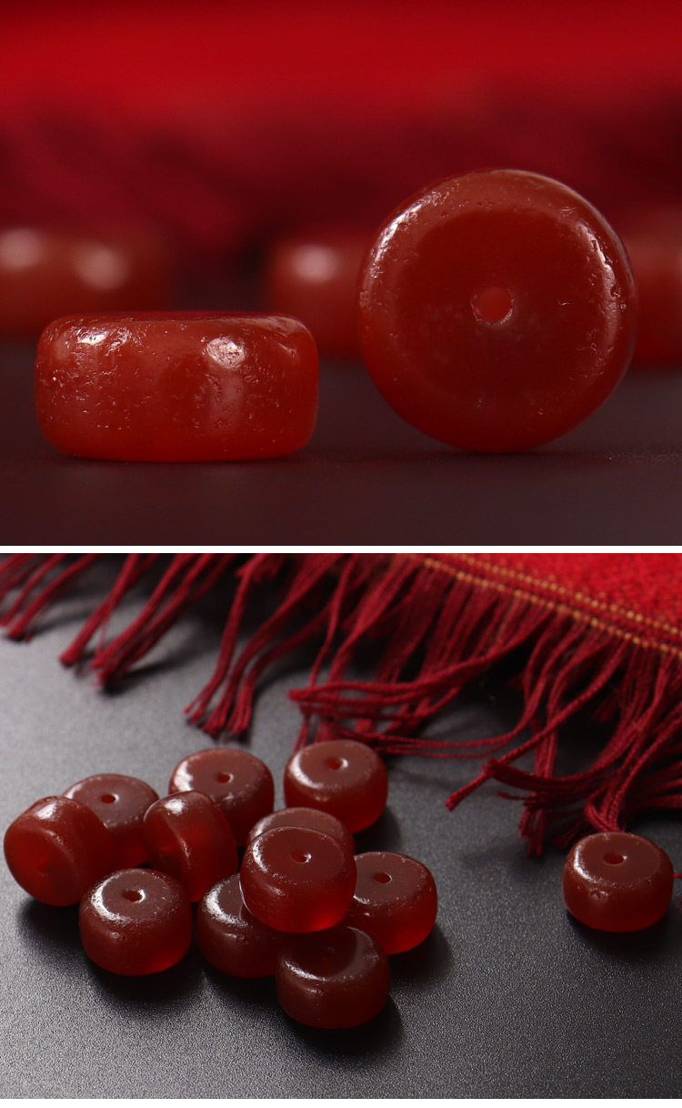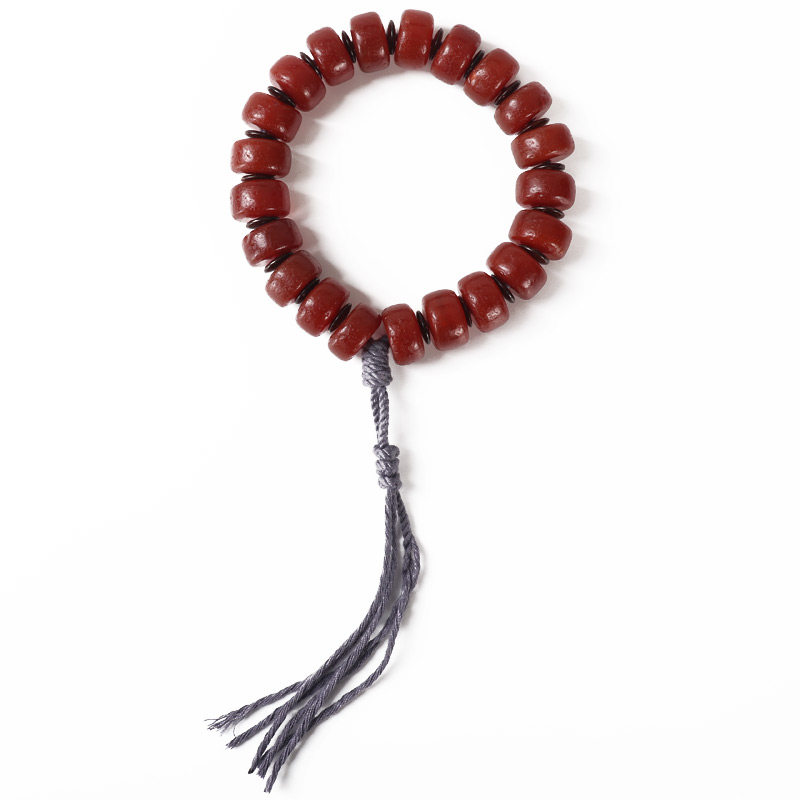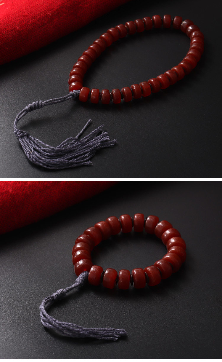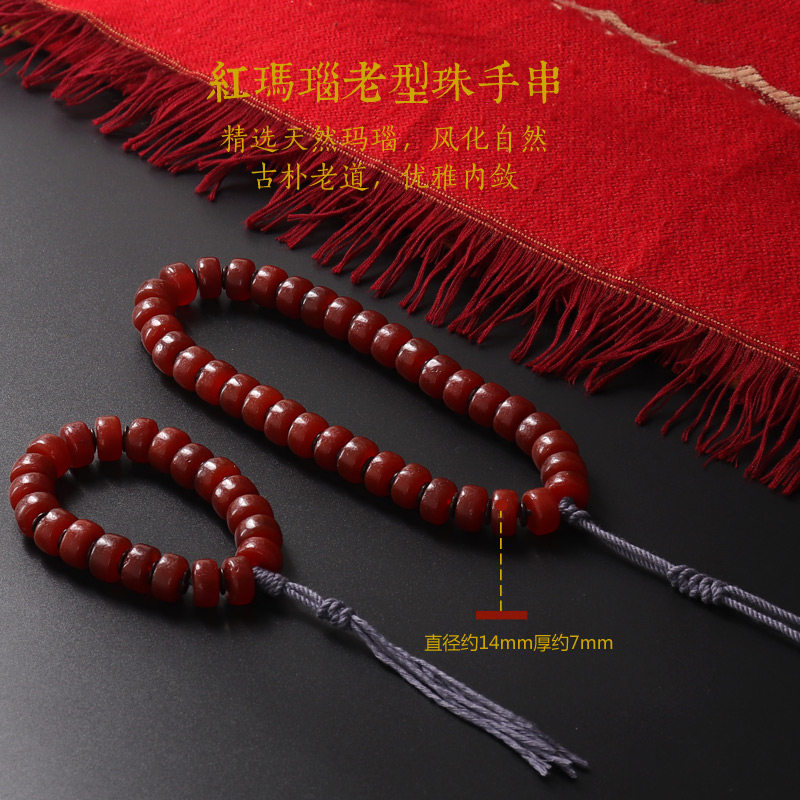 藏传红玛瑙老型珠手串 藏式扁珠手链男女 原创流苏手持长手串