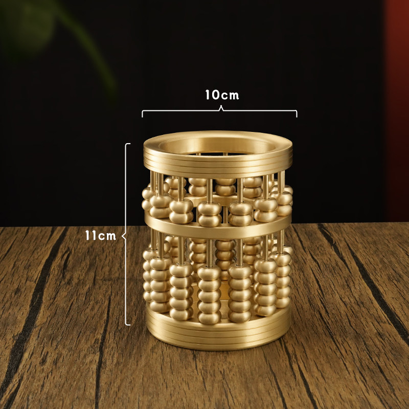 黄铜算盘笔筒中式小摆件桌面创意礼物铜艺术品家居装饰品铜摆设
