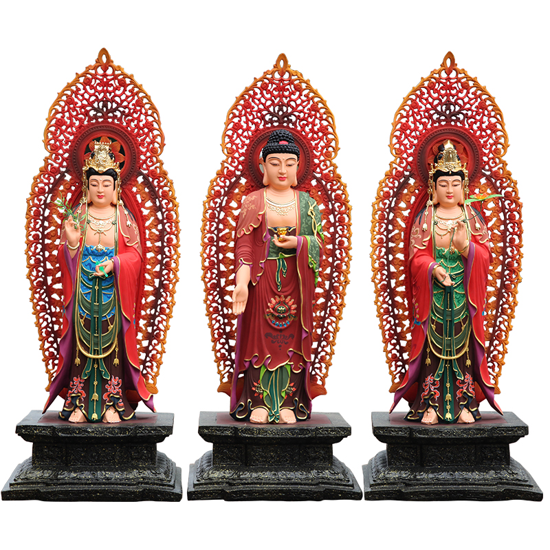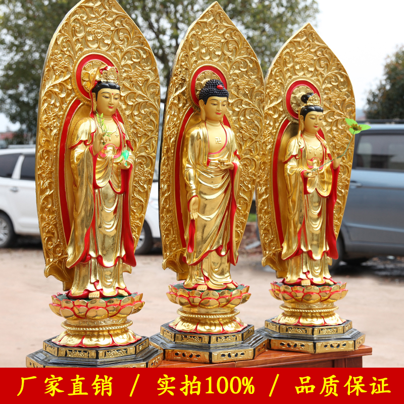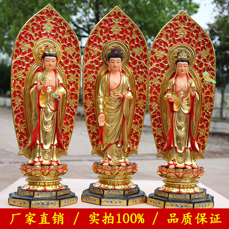 善吉居家供奉家用西方三圣佛像 站观世音菩萨 带背光1米1三圣神像
