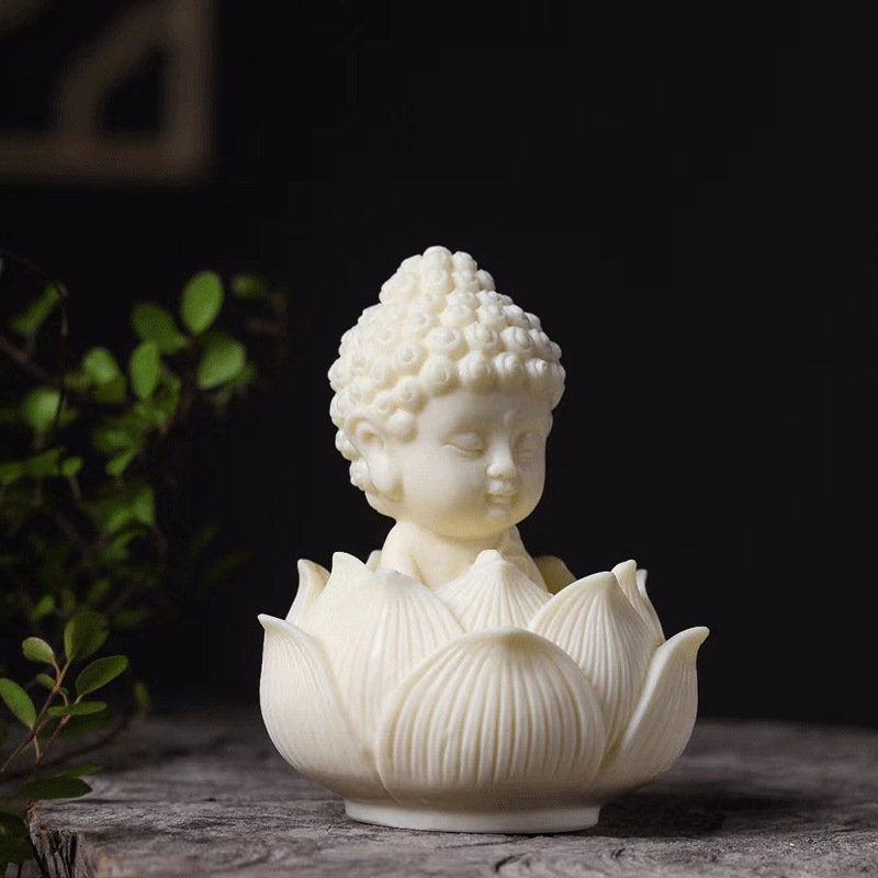 象牙果雕刻摆件宝宝佛象牙骨娃娃佛饰品莲花宝座台家居摆台手把件