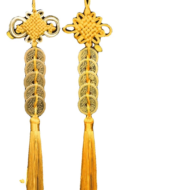 黄线穿五帝铜钱串的五帝钱九串黄色九串五帝钱黄色线绳子六帝挂件