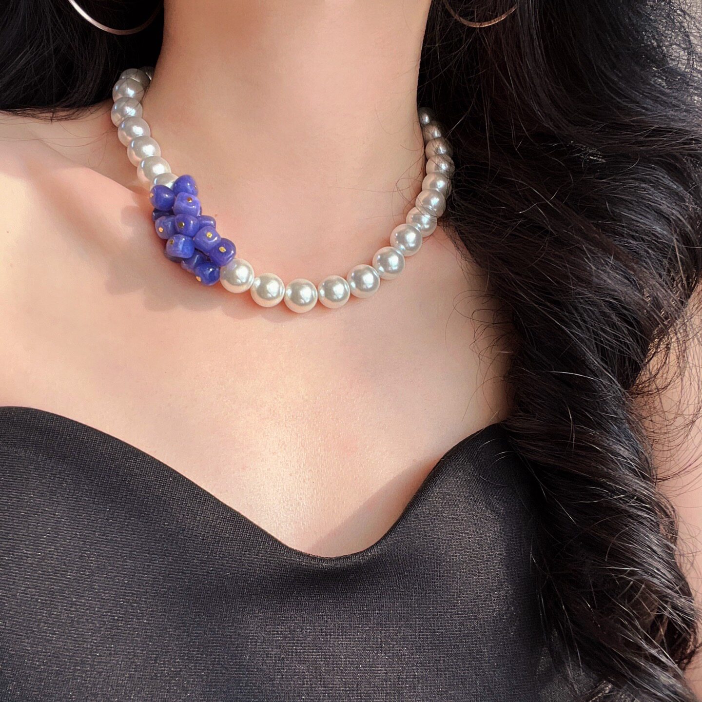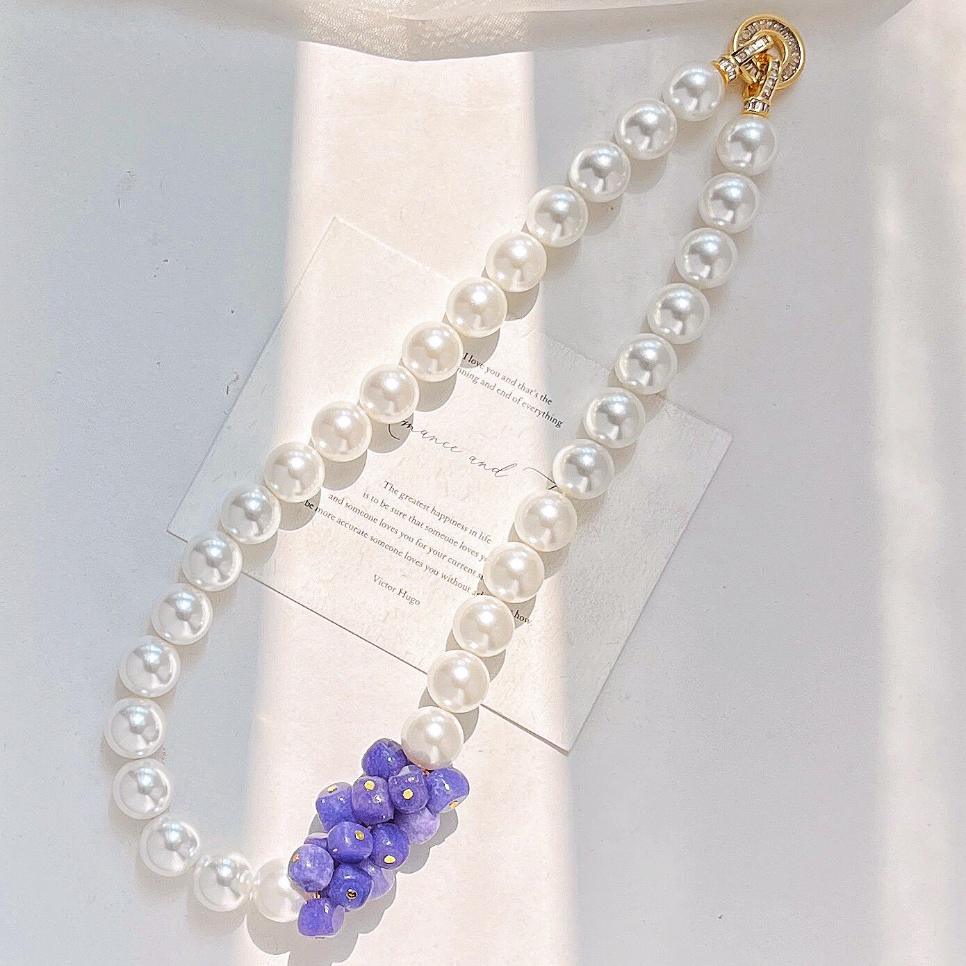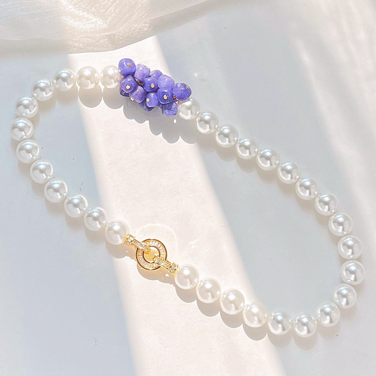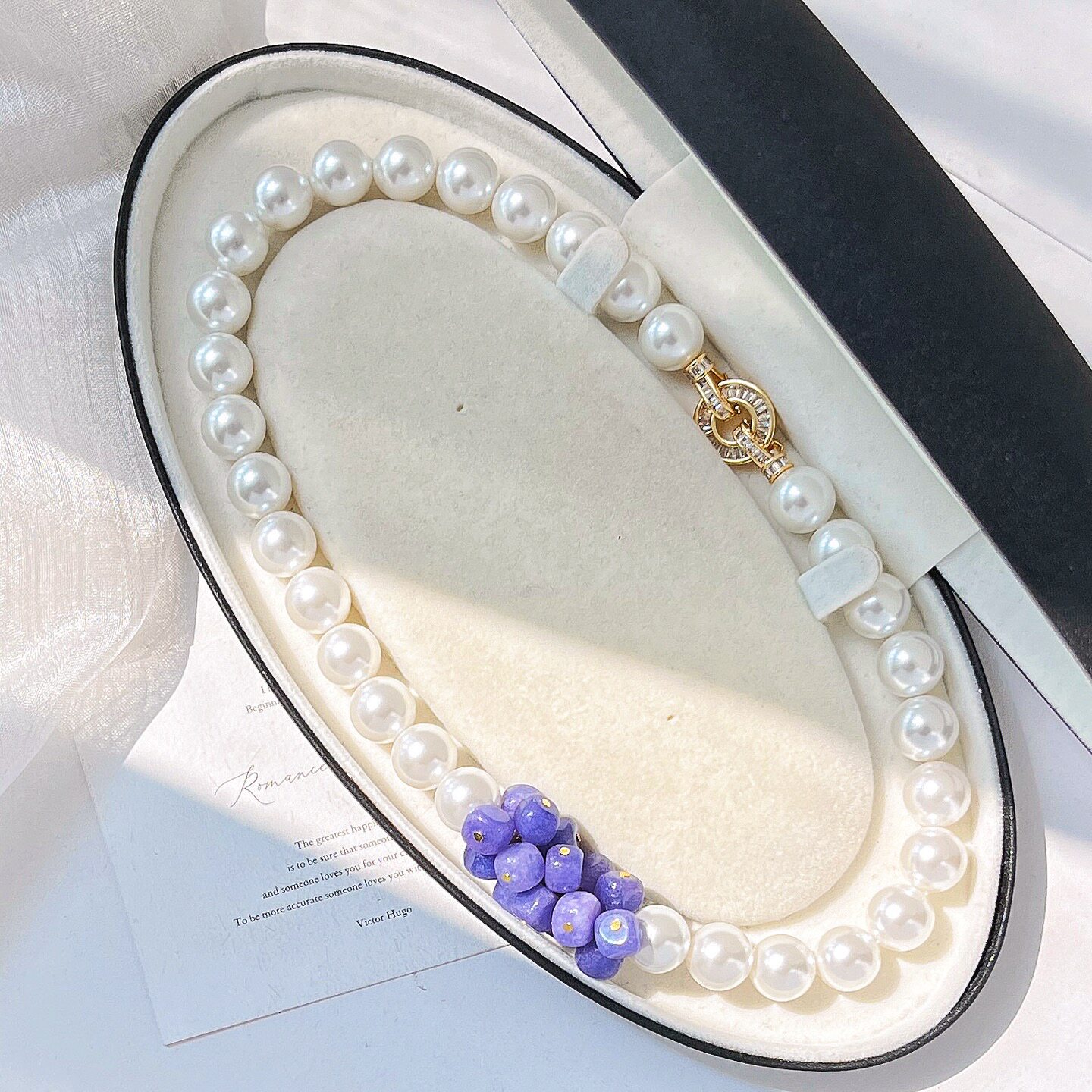 自制 法式珍珠项链女 紫色饰珠拼接锁骨链 轻奢高级感颈链配饰