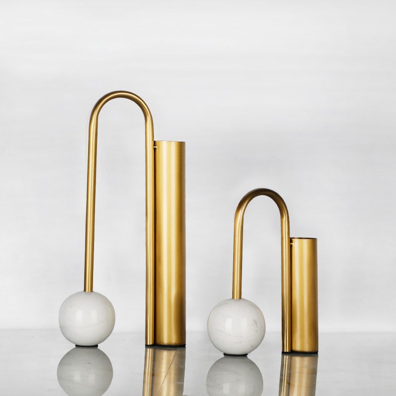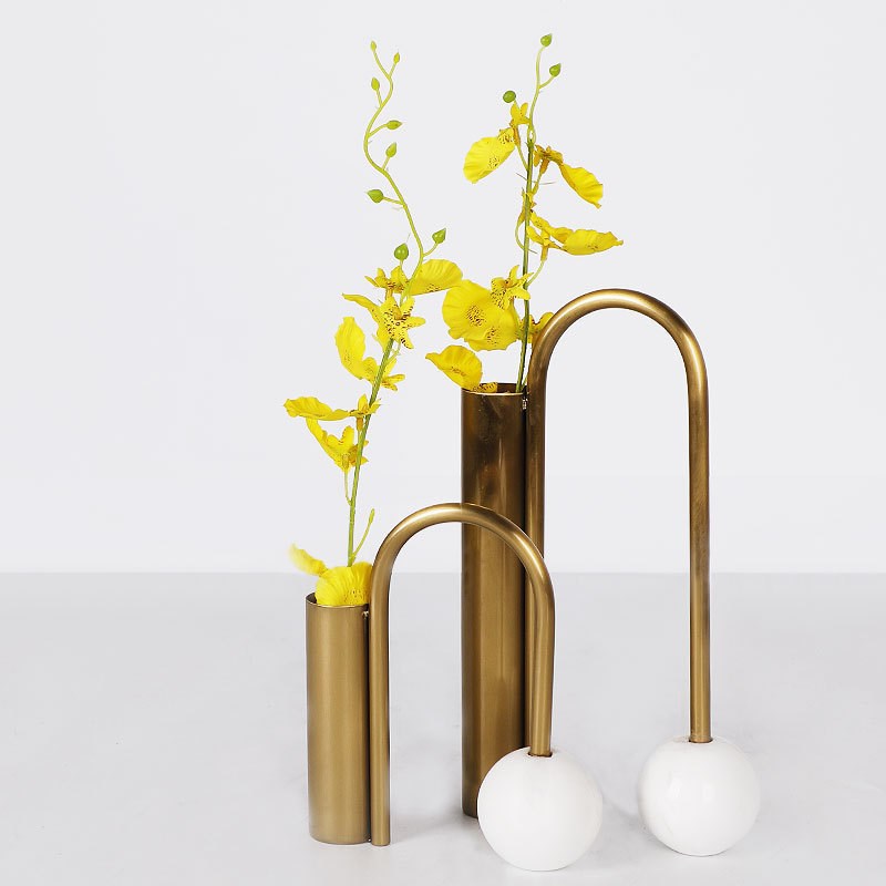 设计师欧式轻奢大理石U型花器摆件酒店会所样板间客厅金属工艺品