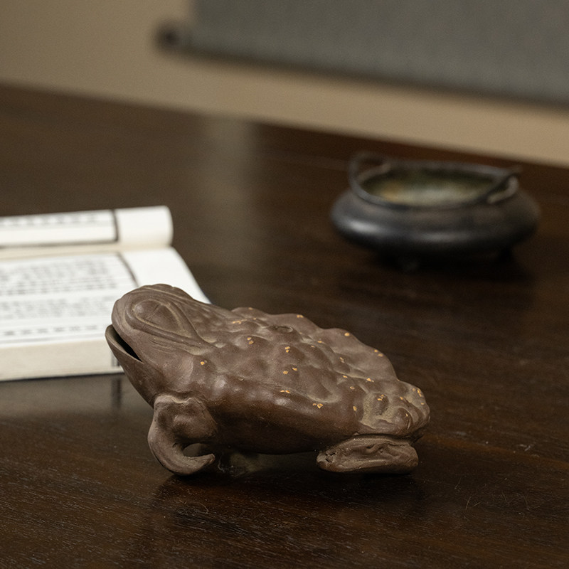 清代紫砂金蟾摆件老物件收藏品文玩古董真品中式桌面招财手把件