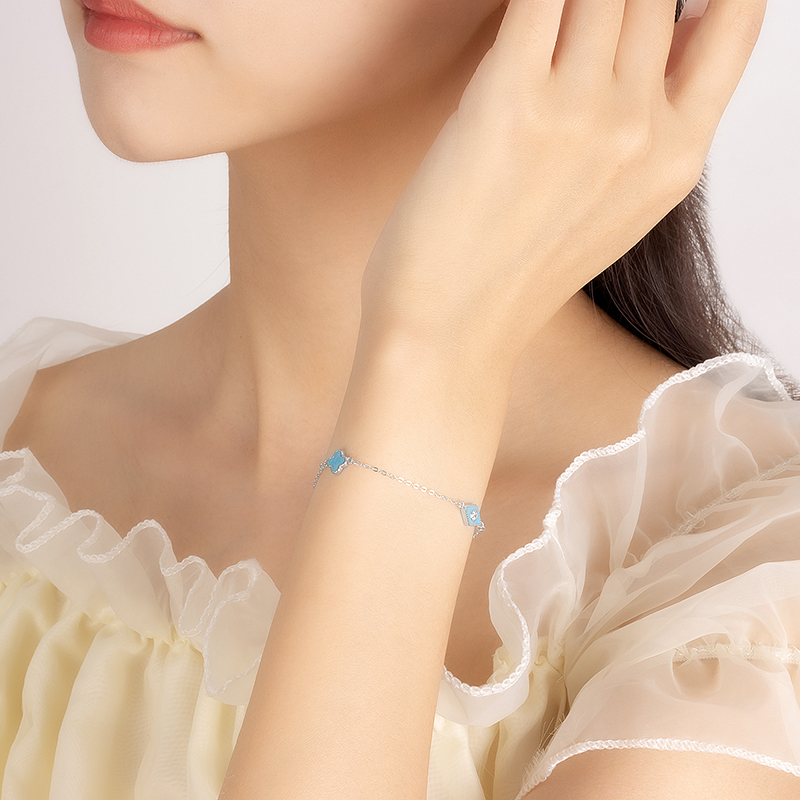 925纯银珐琅四叶草手链精致潮流高级设计男女通用手饰镶嵌手环