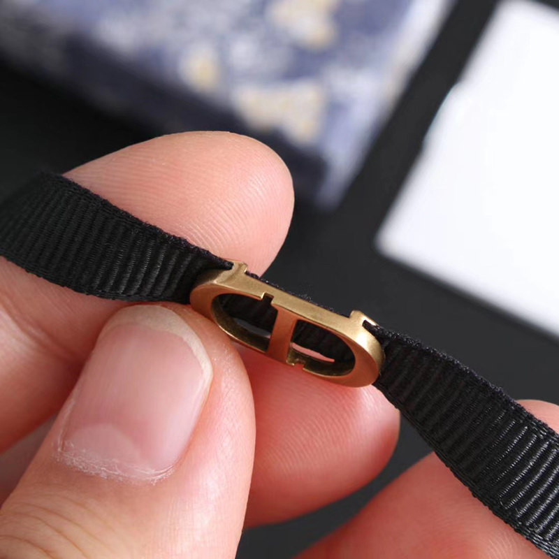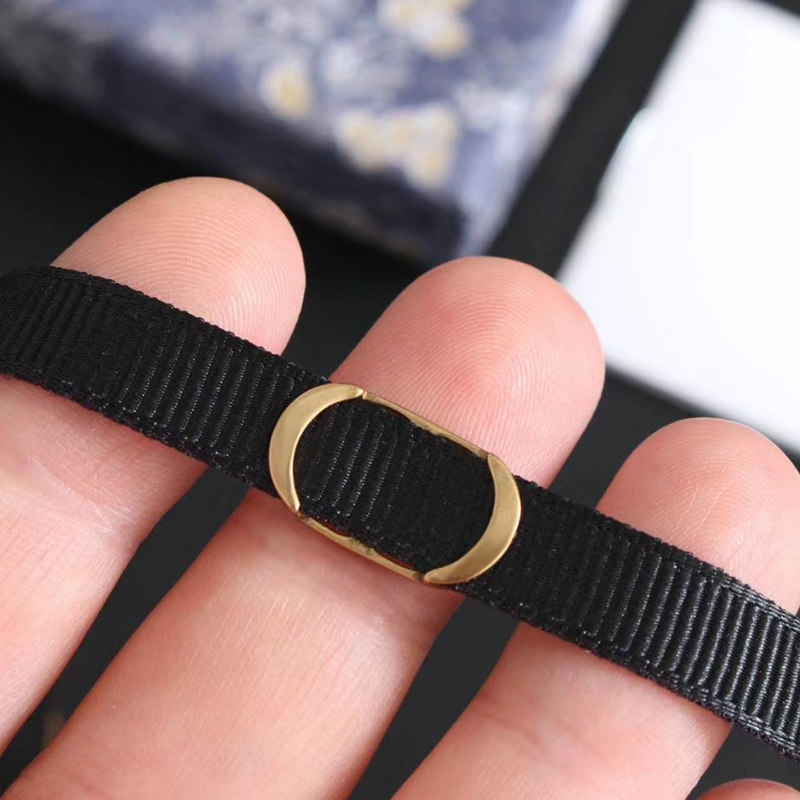 D家CD字母黑绳颈链choker项圈复古做旧黄铜日韩简约高级锁骨项链