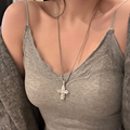 甜酷风重工镶钻十字架吊坠项链潮气质小众设计感长款锁骨链毛衣链