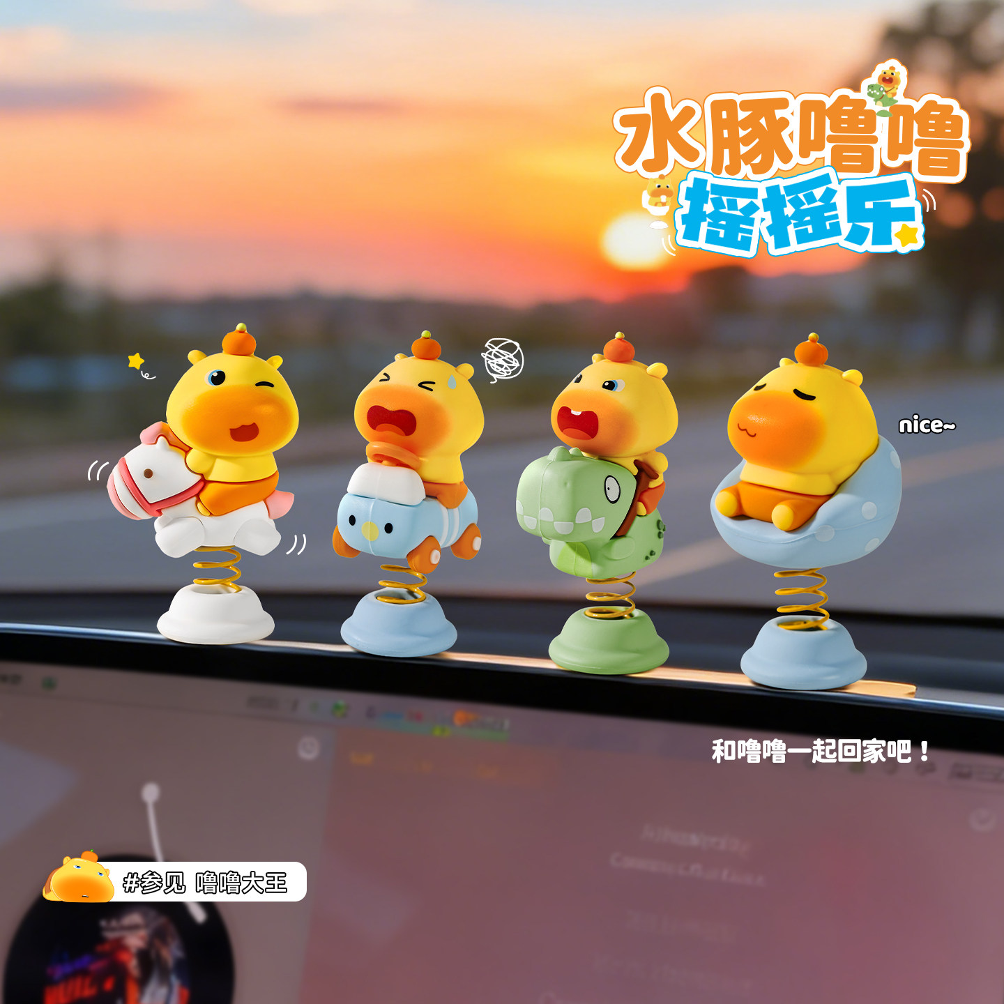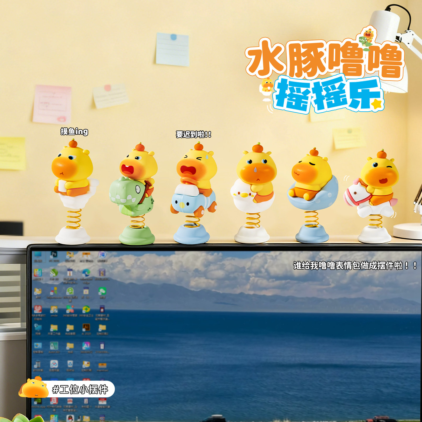 正版水豚噜噜摇摇乐小摆件办公室桌面工位可爱电动车载公仔装饰品
