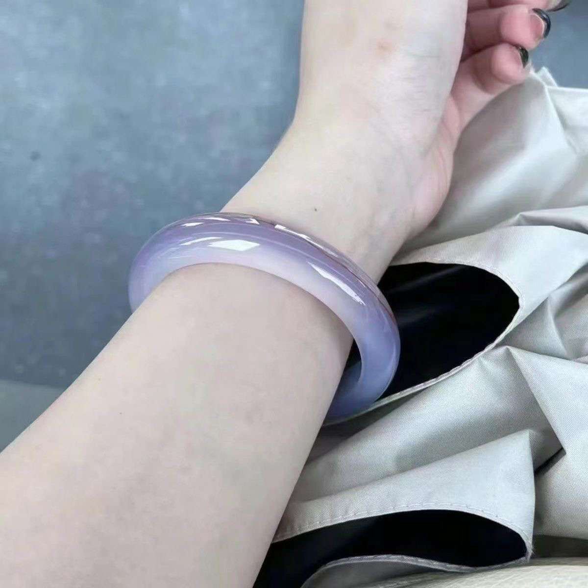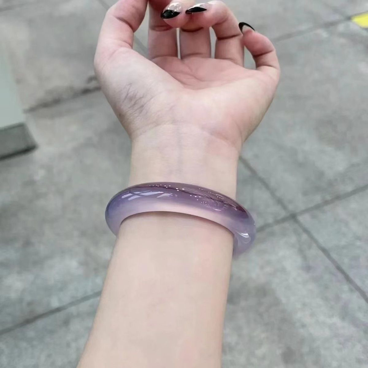 天然马料烟紫色手镯高冰帝王猫眼石紫罗兰色小众冰种紫气东来女