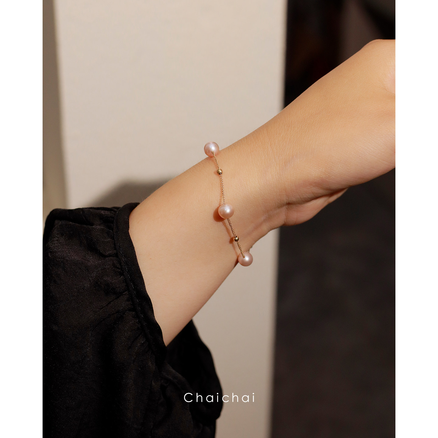 清仓!紫色天然珍珠满天星手链女14K包金高级轻奢百搭款气质手饰