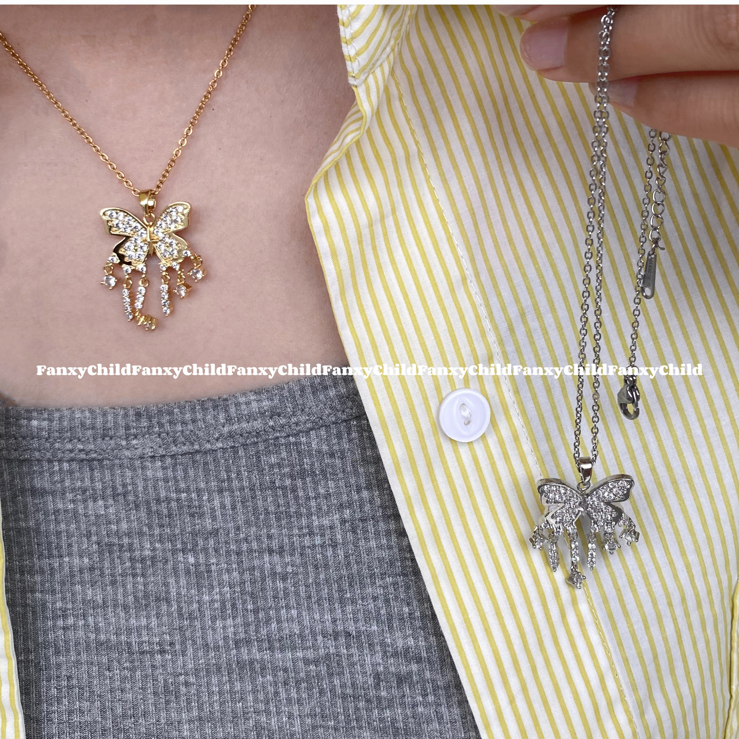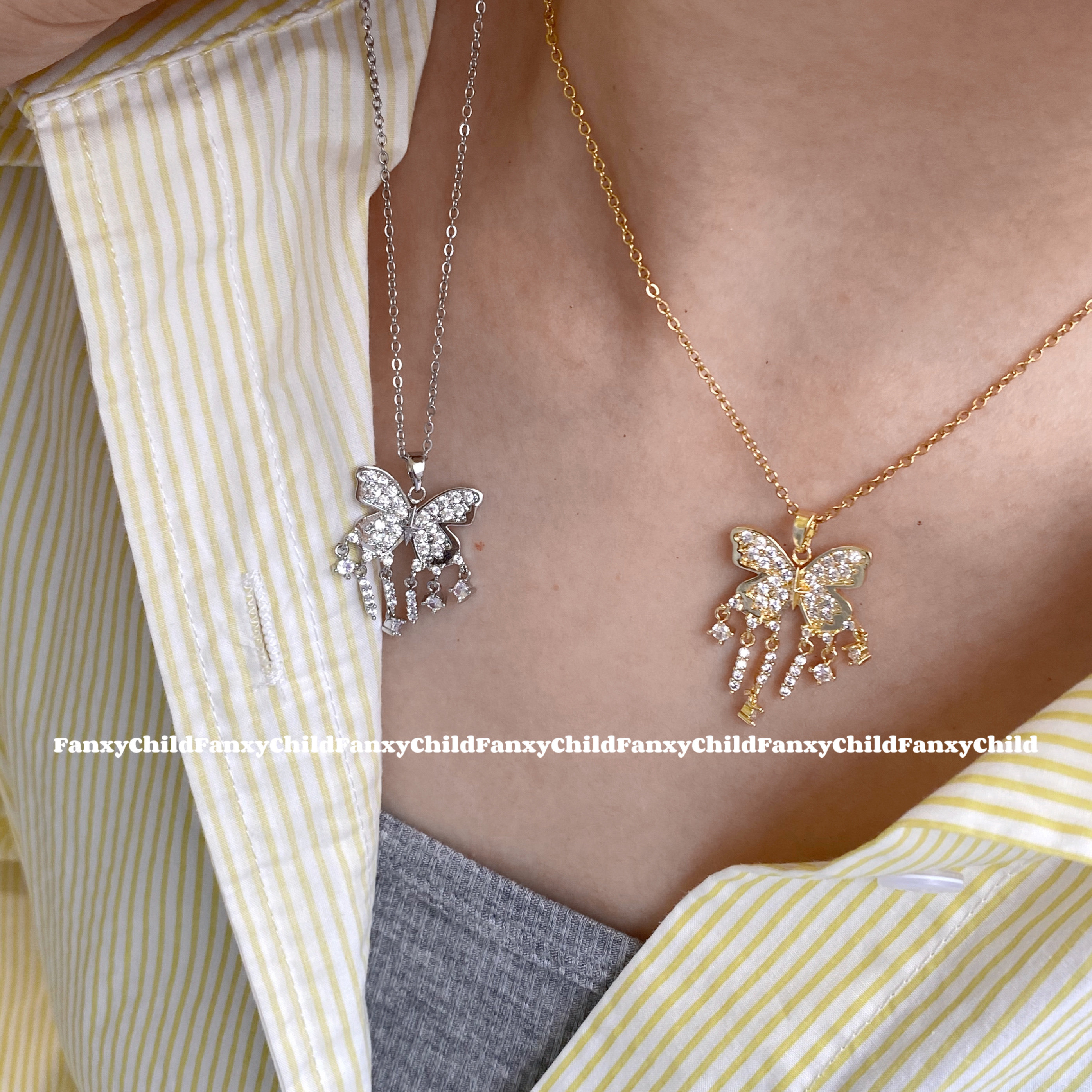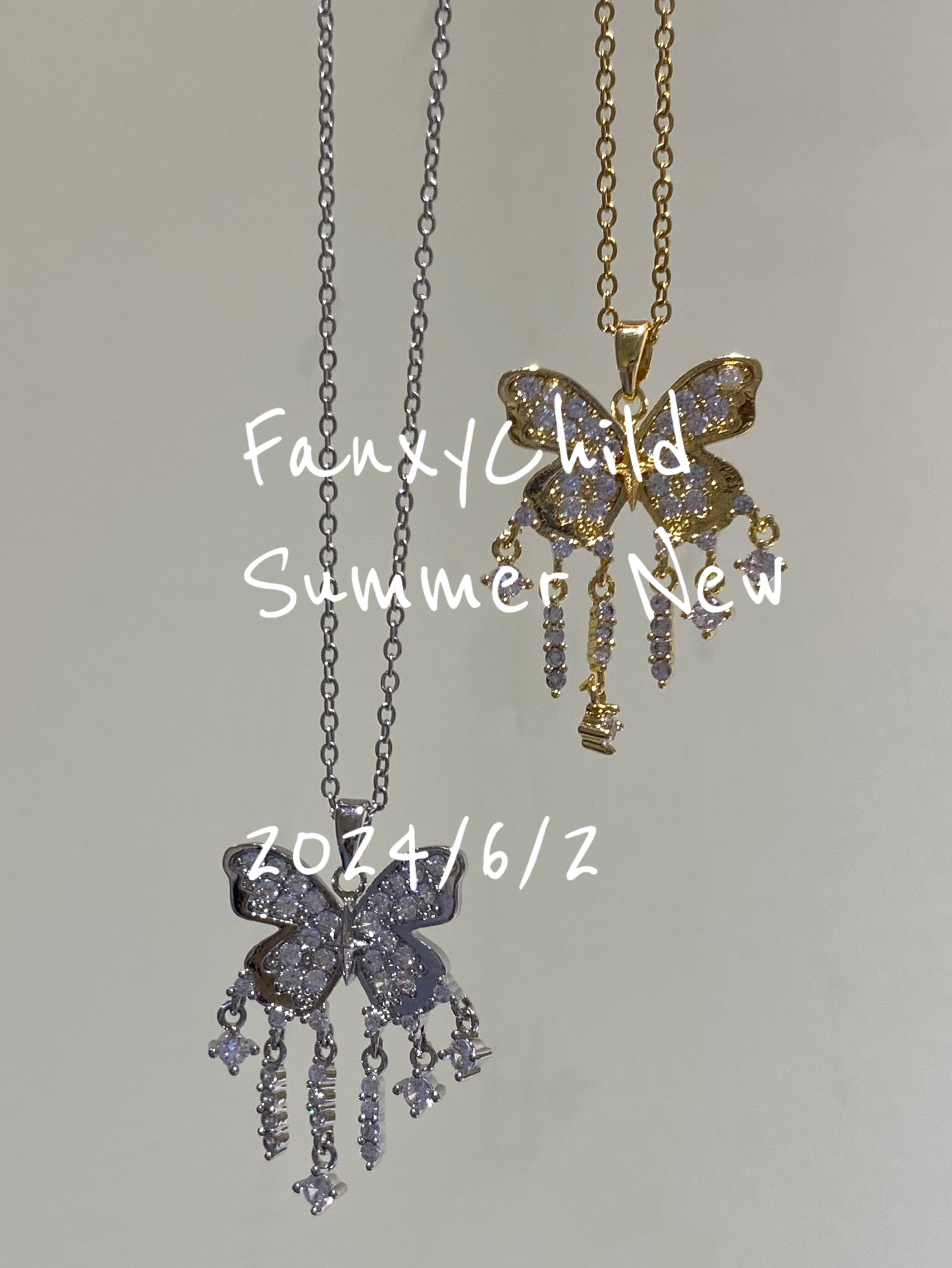 Fanxy马赛克碎钻蝴蝶项链女轻奢小众设计高级气质锁骨链2024新款
