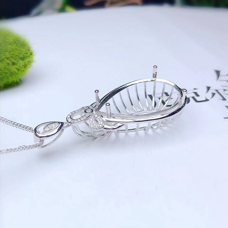 新款S925纯银水滴形吊坠银空托 大尺寸22*30mmDIY银饰配件