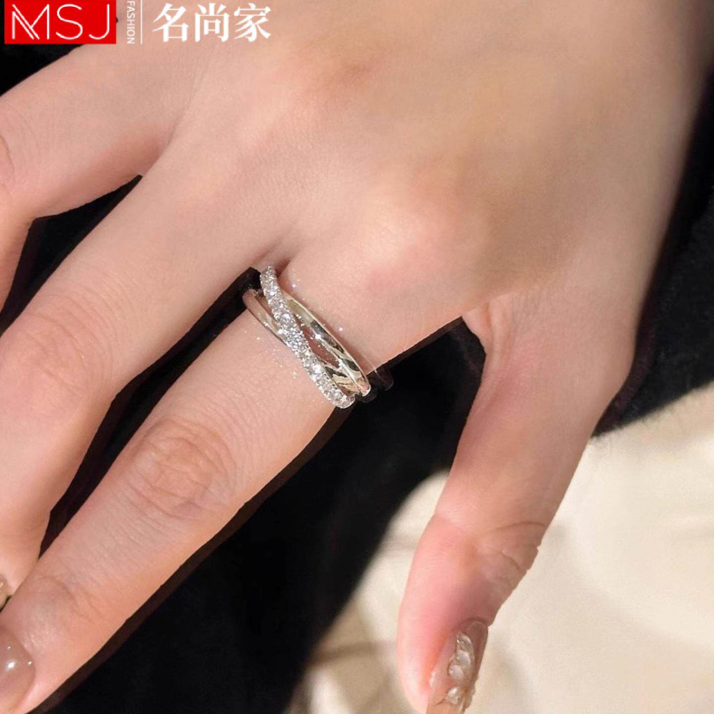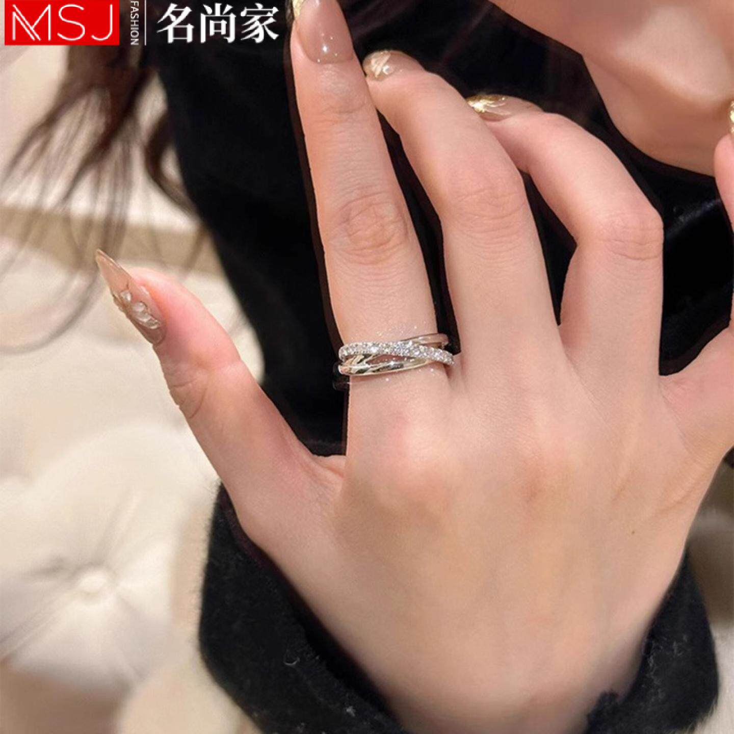 msj三环交叉叠戴戒指女简约冷淡风个性缠绕锆石百搭几何开口指环