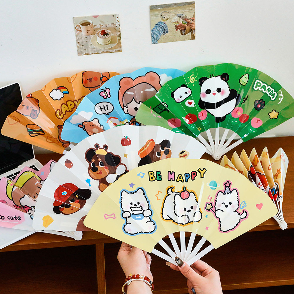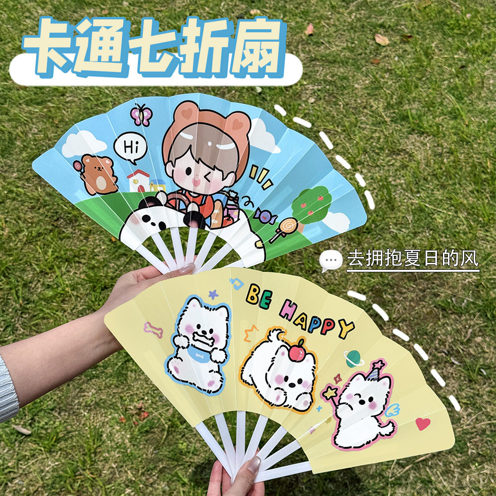 超可爱萌宠手摇扇卡通熊猫水豚高颜值七折扇幼儿园儿童节礼物批发
